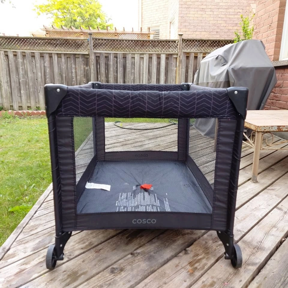 The perfect companion for your baby, right from birth up until toddler age. The cozy infant Playpen also comes with mesh sides for better airflow and visibility. Has an easy & compact folding mechanism and comes with a carry bag for portability. Pet Free || Smoke Free || Bug Free. Cleaned and Sanitized so ready to use for the baby. Pickup Only. Let me know if you're interested!