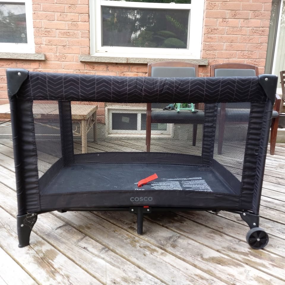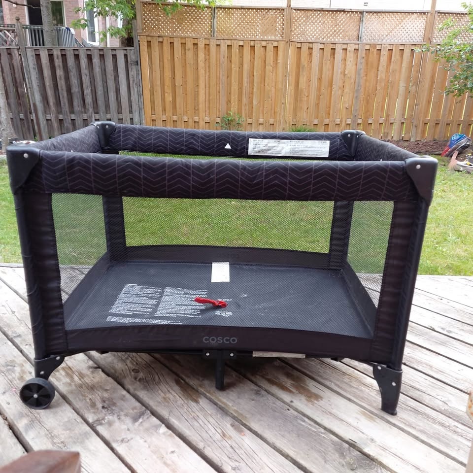 The perfect companion for your baby, right from birth up until toddler age. The cozy infant Playpen also comes with mesh sides for better airflow and visibility. Has an easy & compact folding mechanism and comes with a carry bag for portability. Pet Free || Smoke Free || Bug Free. Cleaned and Sanitized so ready to use for the baby. Pickup Only. Let me know if you're interested!