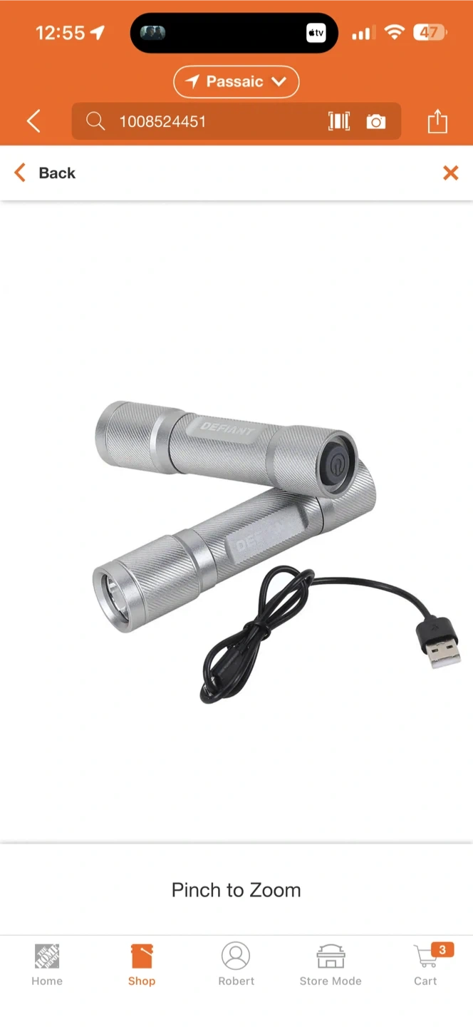 Defiant Rechargeable Aluminum Flashlights (2-Pack), 500 Lumens