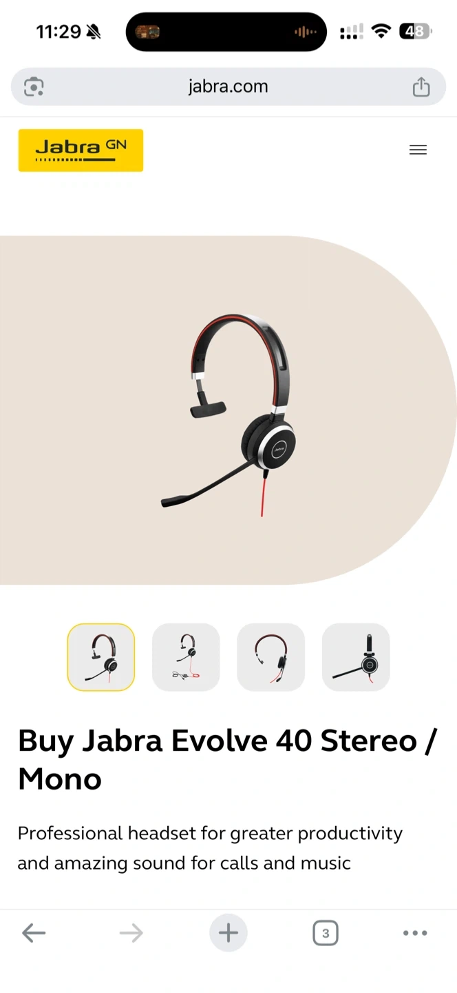Jabra Evolve 40 mono Headset with Inline Controls and Case