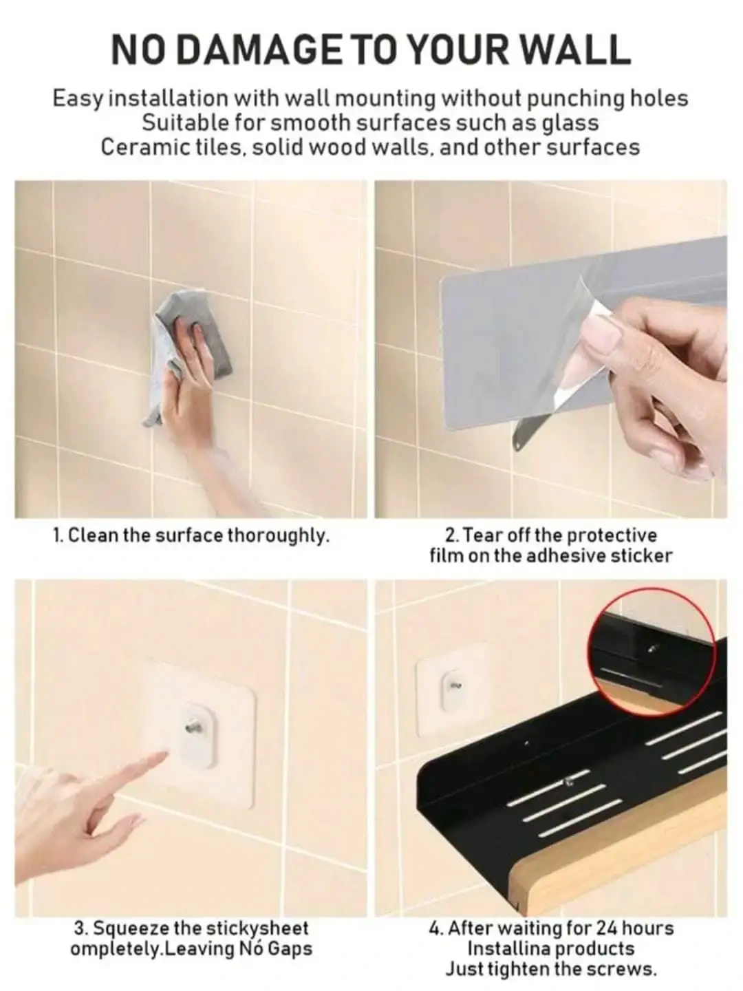 Organize your space with this new wall shelf, perfect for adding storage without taking up floor space. Made with durable, rust-resistant materials, it's ideal for bathrooms, kitchens, or any room needing a bit of organization. Easy to install with no drilling required!