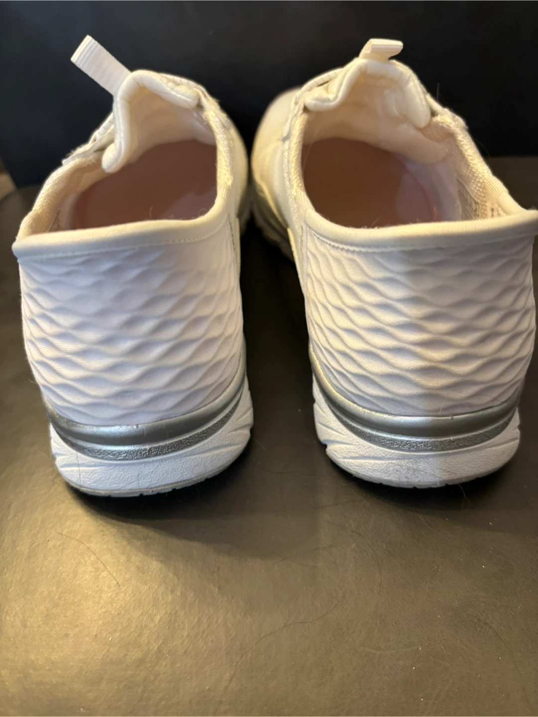 Like New. Worn indoors 2X. White Skechers Slip-ins women's sneakers. These shoes are designed for easy on and off with a slip-in fit. They feature a breathable textile upper and a cushioned insole for comfort. Size is US 5, EUR 35.
