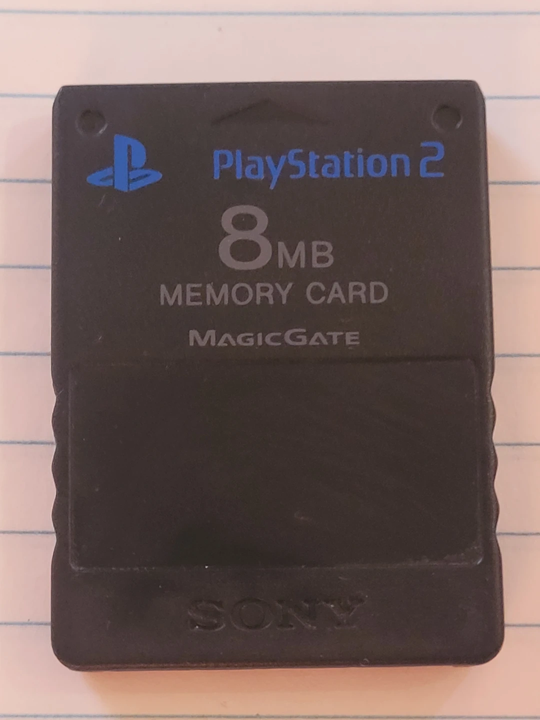 This is a Sony PlayStation 2 8MB memory card. It uses MagicGate technology. This card is essential for saving your game progress on your PS2 console!