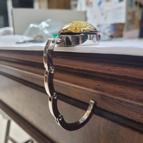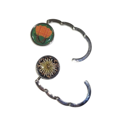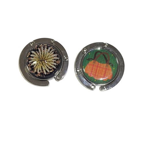 Keep your purse or bag off the floor and easily accessible with this set of two portable, foldable bag hangers. They hook onto the edge of tables or other surfaces, keeping your belongings clean and within reach. Great for restaurants, cafes, or anywhere you want to keep your bag handy.