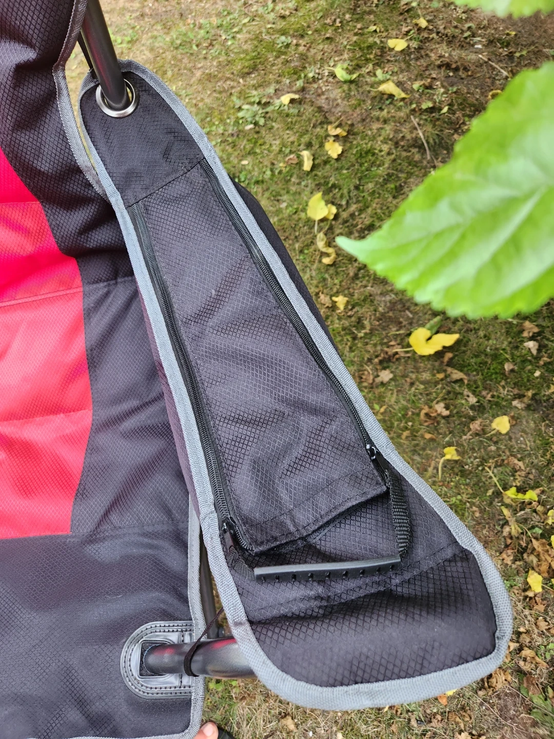 Used once. Heavy-duty lawn chairs. Comes with bag for carrying. Has a mini cooler in the arm rest.