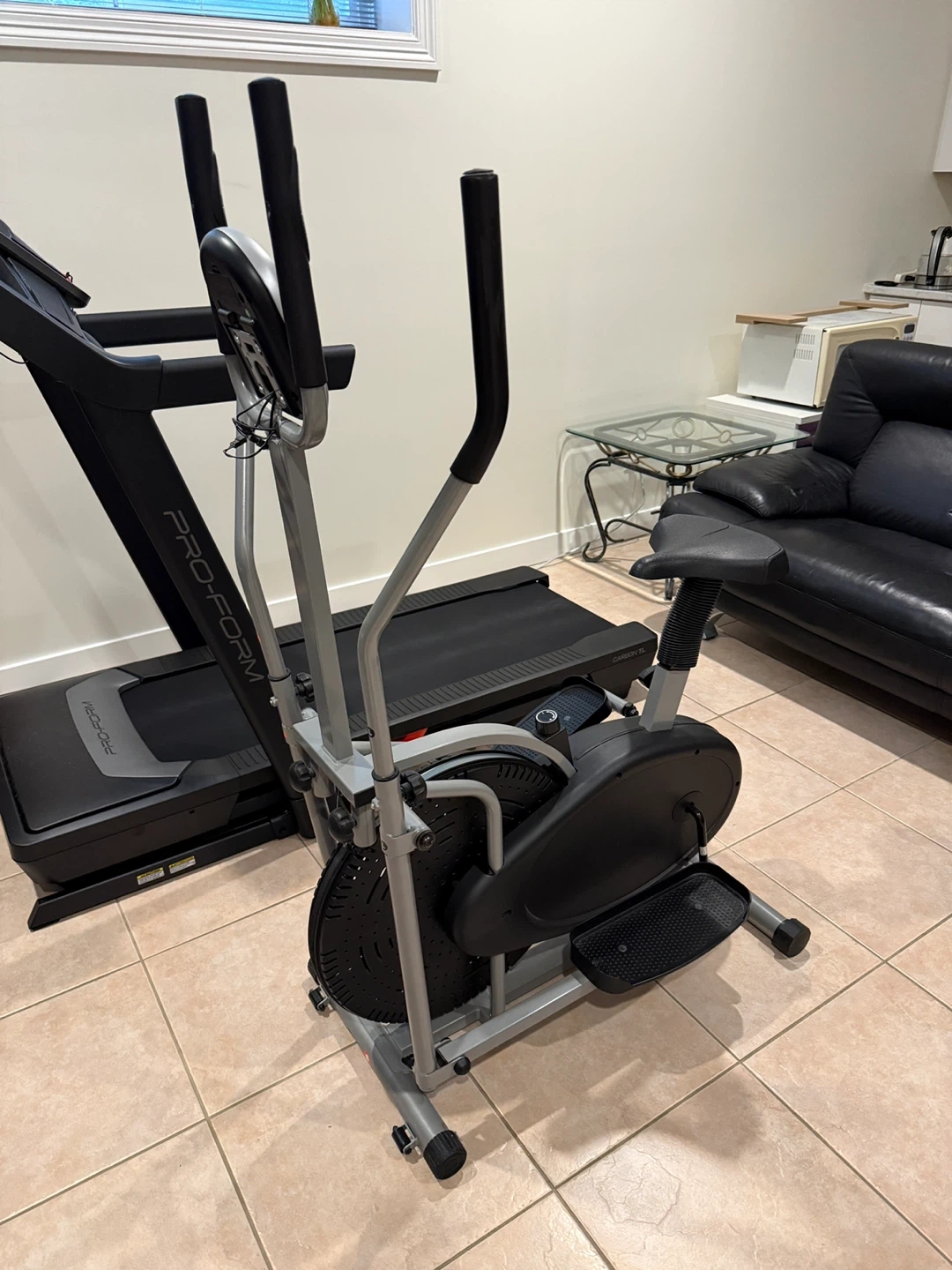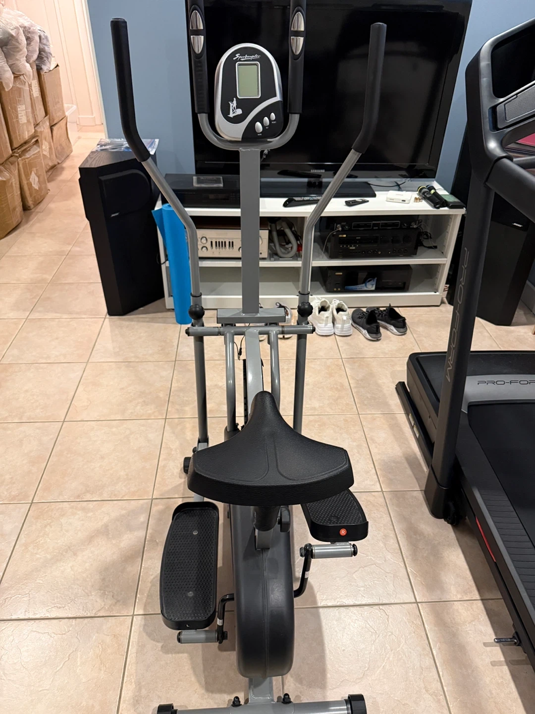 This elliptical bike from Sportcomputer offers a versatile workout with its combination of elliptical motion and a seated bike option. It features an electronic display to track your progress.