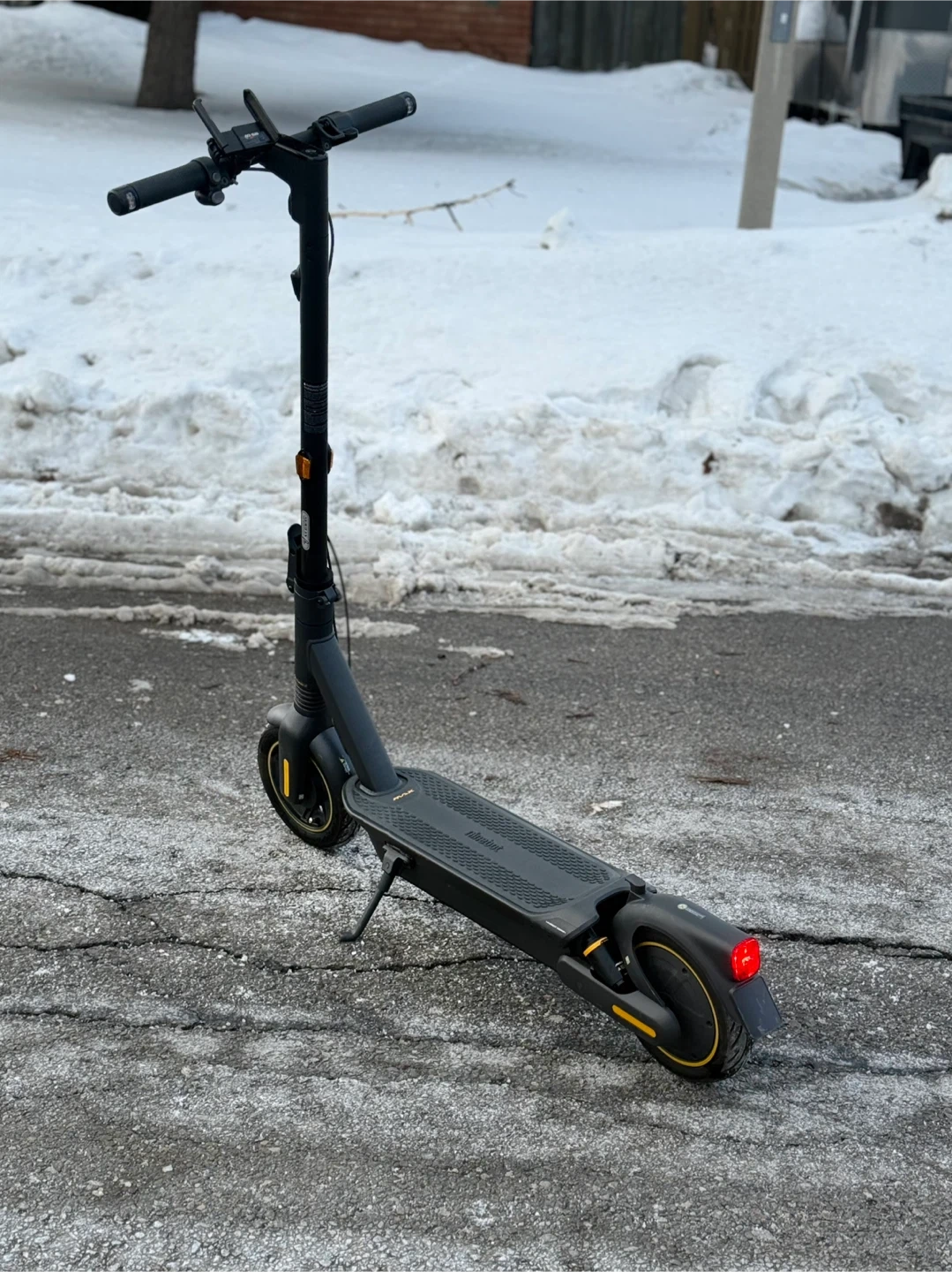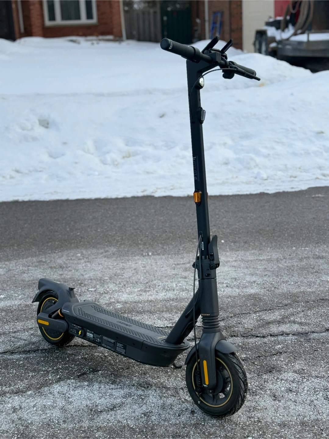 350 kms like new only ridden in summer last year. Turn signals and horn, phone holder brake light, headlight. Max 35 kmh and range 70kmh. Has connectable app has only 5 full charger cycles.