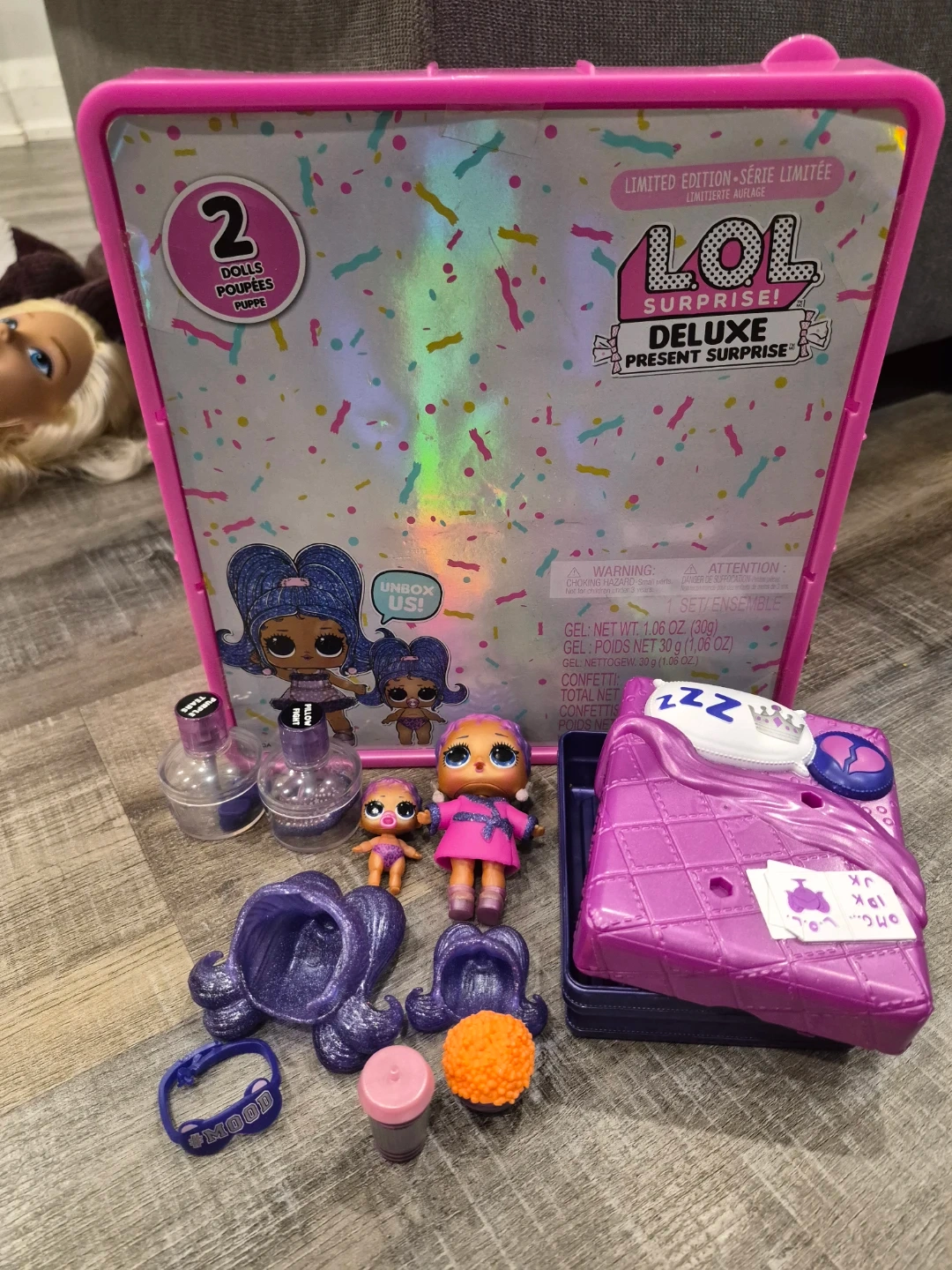 This LOL Surprise Deluxe Present Surprise set includes two dolls and accessories. It comes with a pink quilted carrying case and other fun surprises. Great for kids who love collecting LOL dolls!