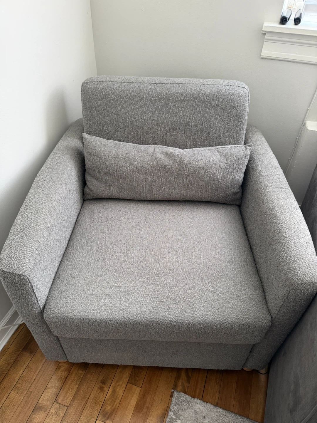 Bought this chair off of Wayfair and only have it for 2 months. It’s great and we love it but unfortunately it doesn’t fit after moving it to another room. It converts to a twin size. Must pick up. Located in Upper East Side. Pet free home. Smoke free home.