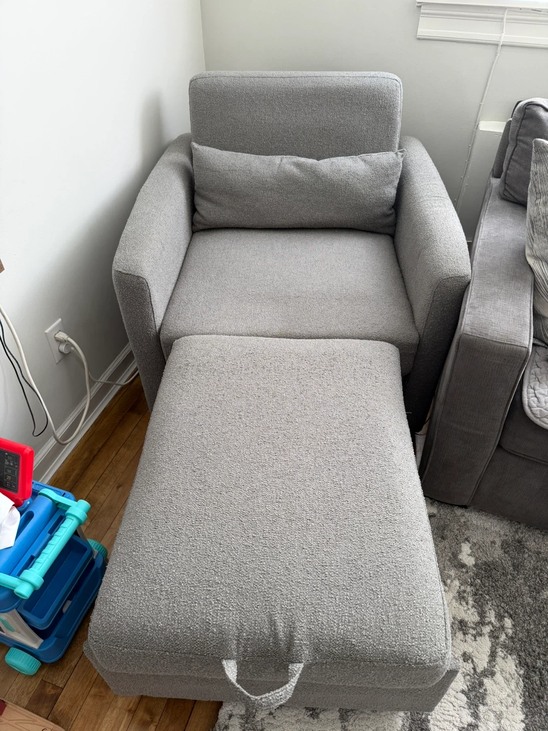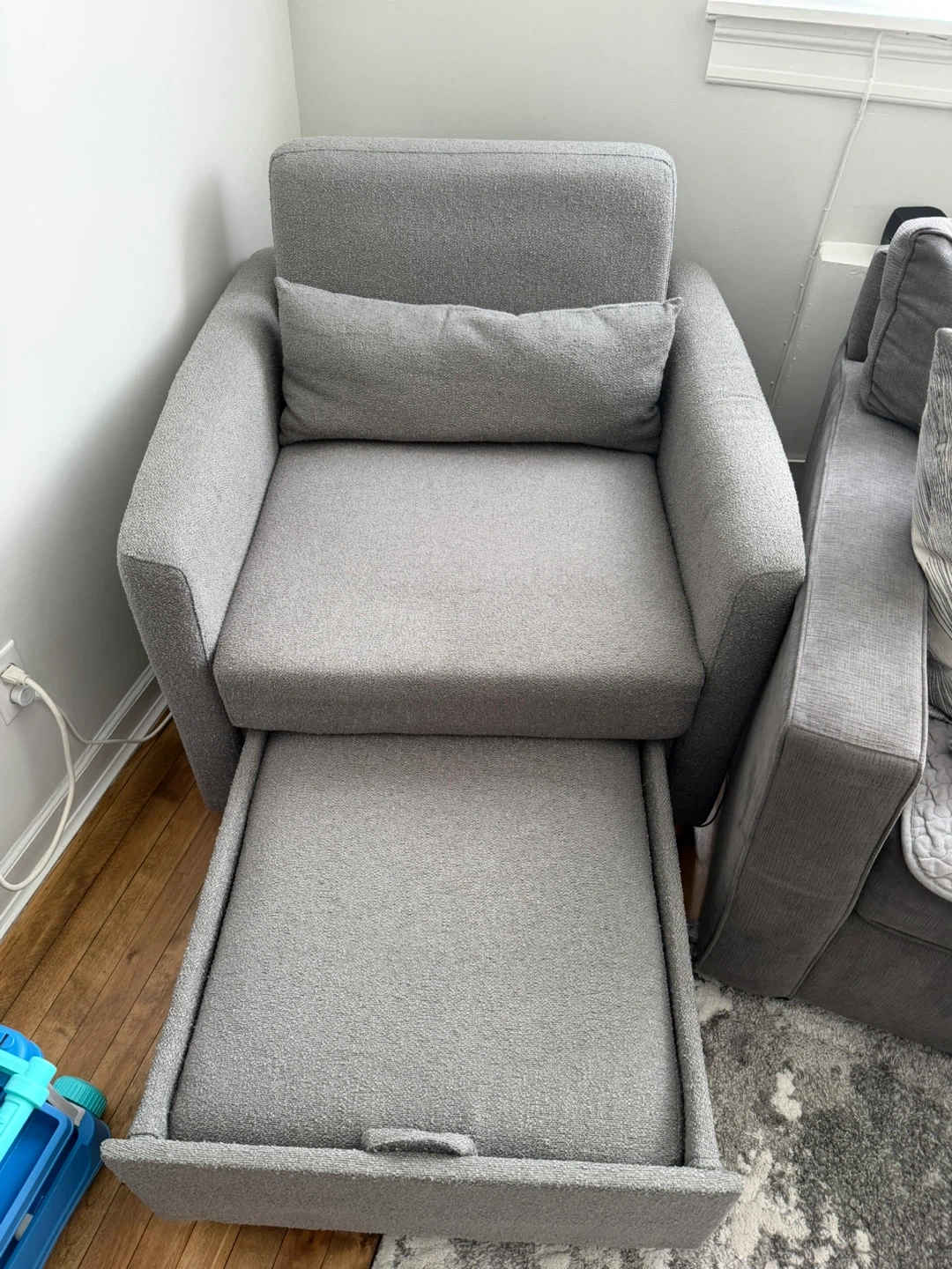 Bought this chair off of Wayfair and only have it for 2 months. It’s great and we love it but unfortunately it doesn’t fit after moving it to another room. It converts to a twin size. Must pick up. Located in Upper East Side. Pet free home. Smoke free home.