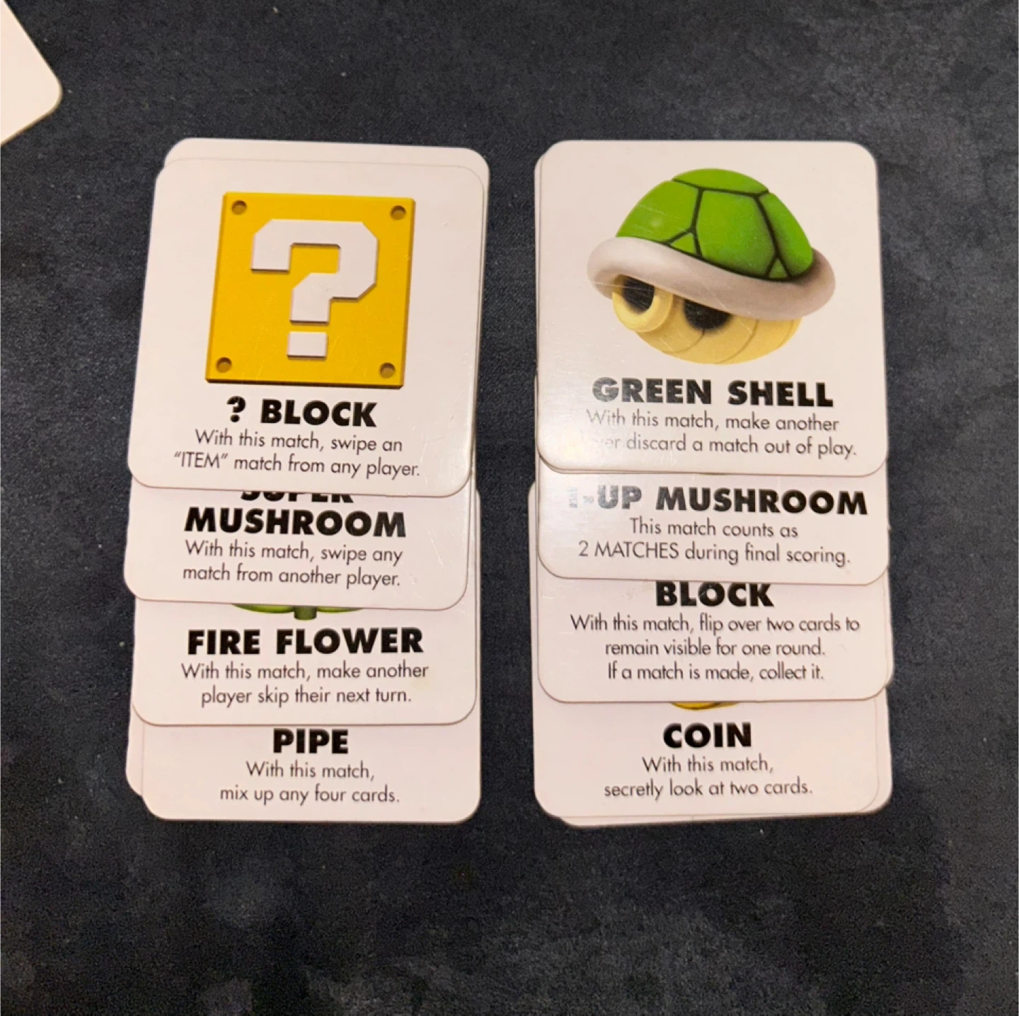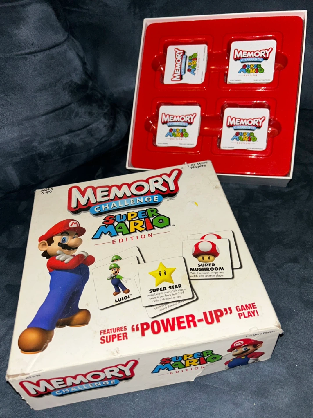 This is the Super Mario Edition of the Memory Challenge game. It's for 1 or more players, ages 4-99. The game includes 33 pairs of cards of all the best characters and items. 8 pairs give special power-ups! It's a fun memory game for Super Mario fans!