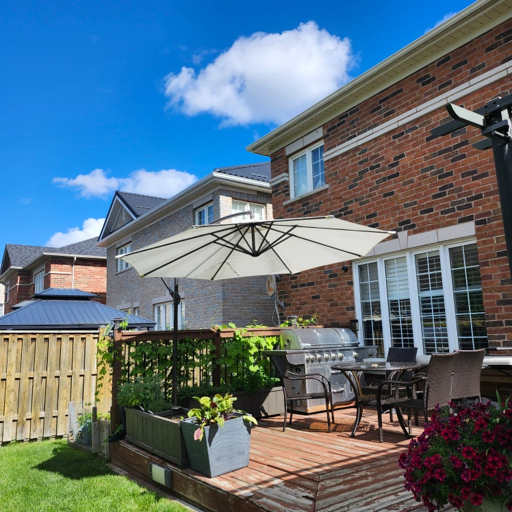 Selling a used patio umbrella. It's perfect for providing shade on sunny days! The umbrella is in good condition and ready to use in your backyard or on your patio