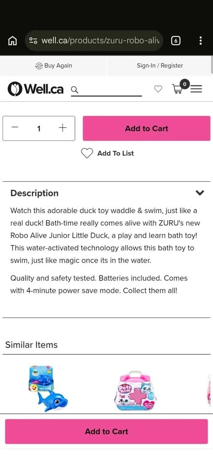 Adorable Zuru Robo Alive Junior Little Duck bath toy! This little guy waddles and swims just like a real duck. Water-activated technology means it comes alive in the water. Battery-powered and batteries included. Has a 4-minute power save mode too. Super fun for bath time! EUC SFH x posted pickup only St Clair Ave East and O'Connor