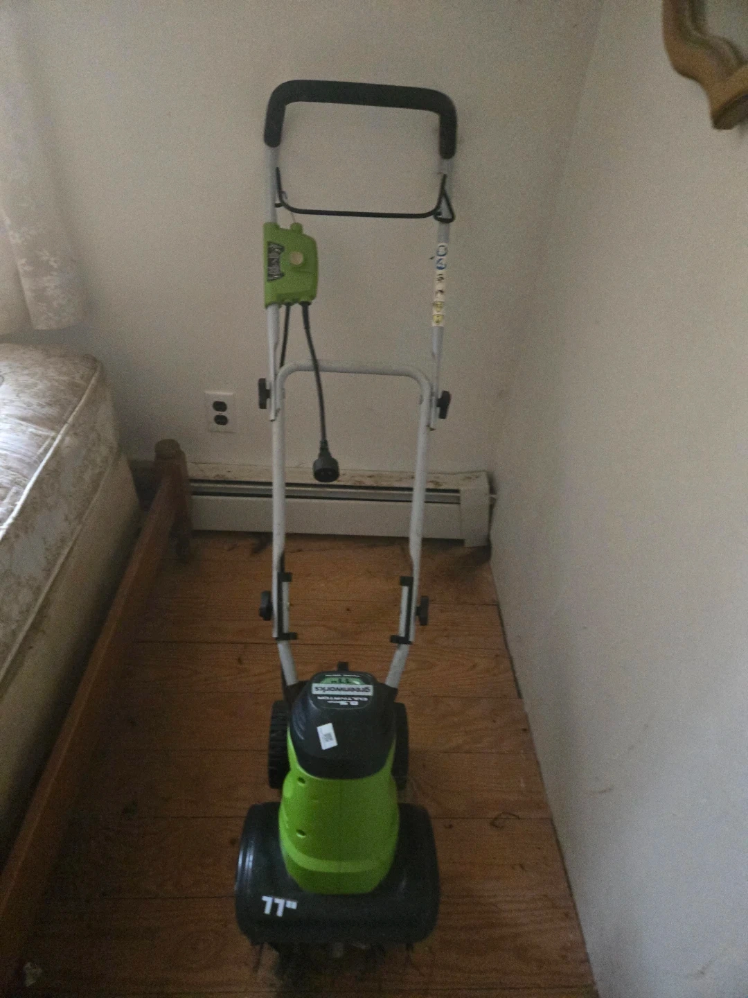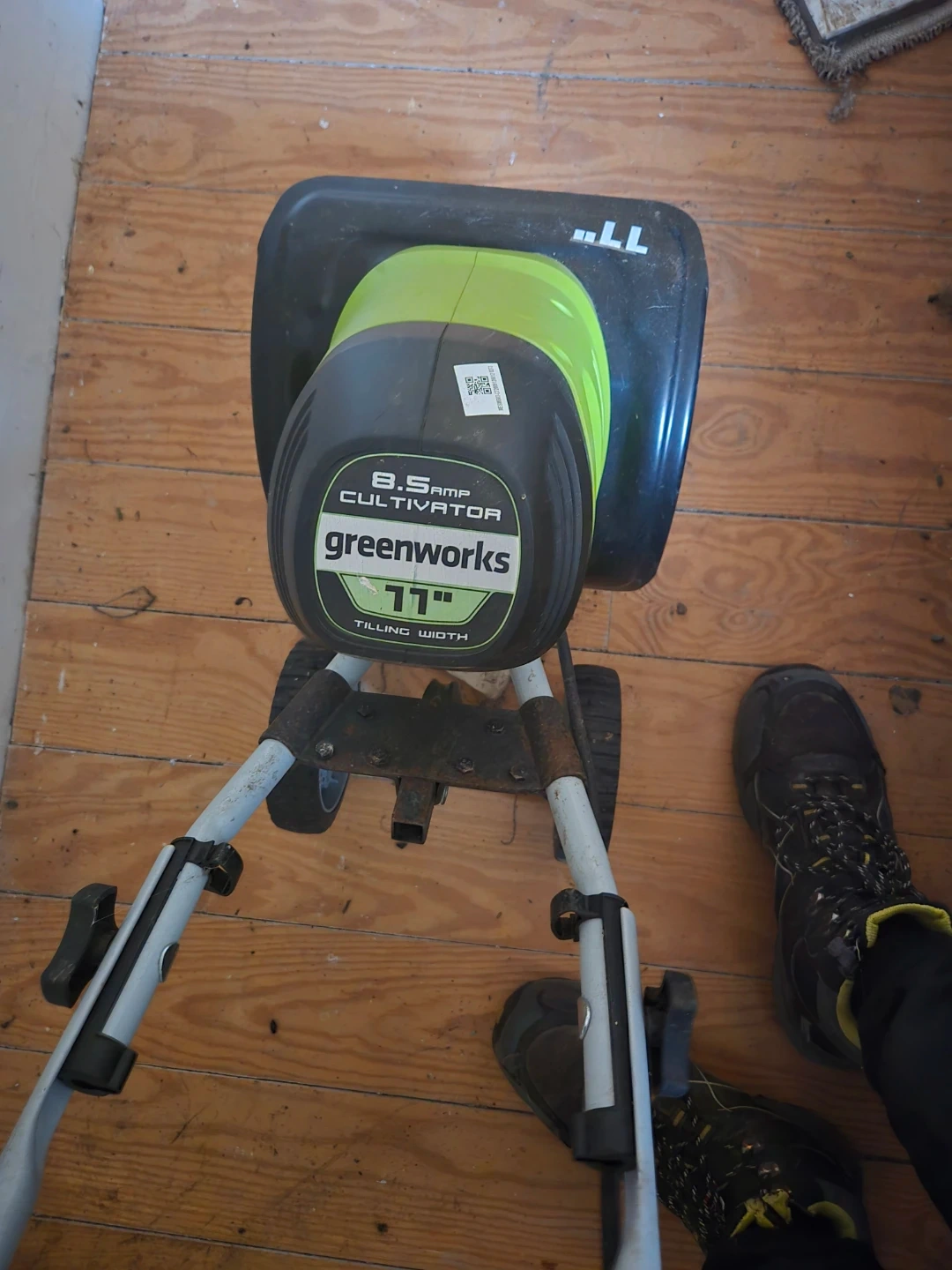 This Greenworks electric cultivator tiller has an 8.5 amp motor and an 11-inch tilling width. It's designed for breaking up soil in garden beds. The corded electric power makes it easy to start and use.