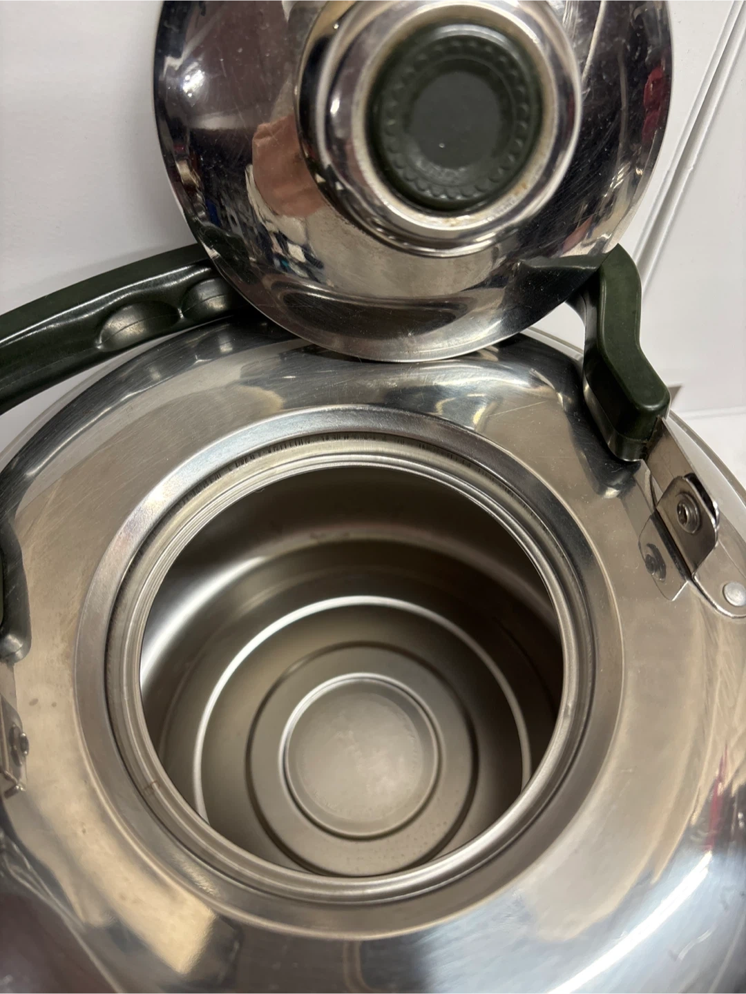 Selling a set of mugs and a stainless steel large kettle. The mugs feature various designs and are microwave safe. The kettle is made of stainless steel.