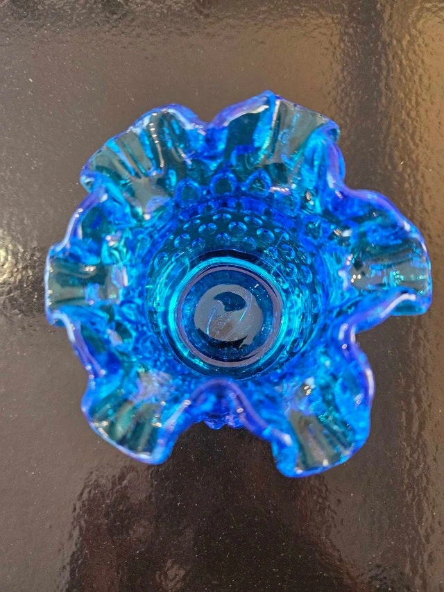 Fenton Blue Ruffled Hobnail Candle Votive/Vase