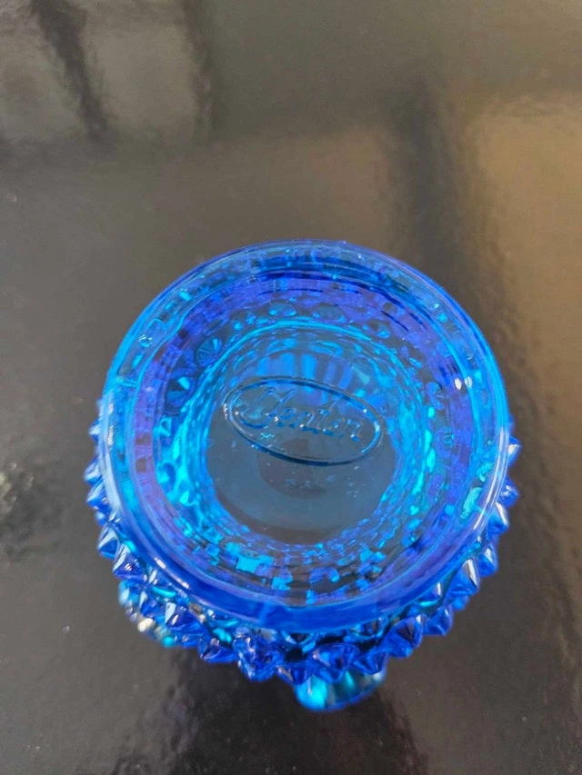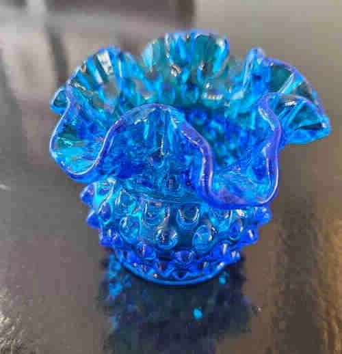 Fenton Blue Ruffled Hobnail Candle Votive/Vase