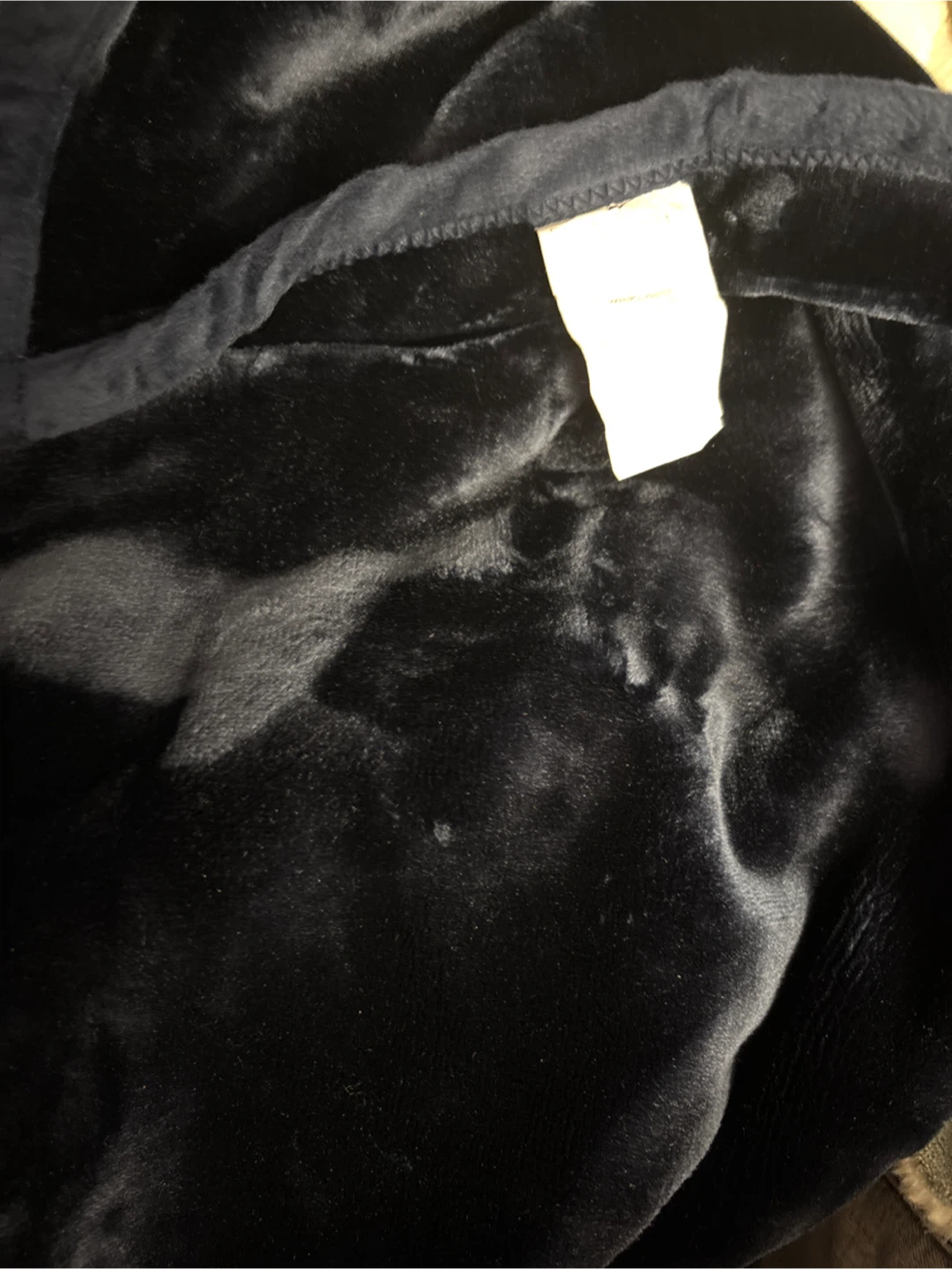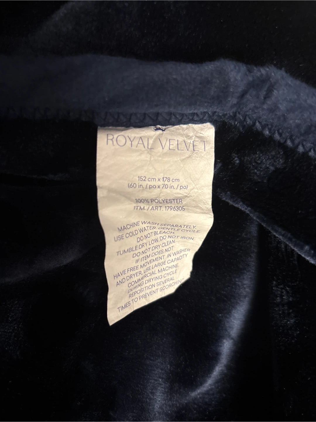 This navy throw is made of 100% polyester. It measures 152 cm x 178 cm (60 in. x 70 in.). It's perfect for staying cozy on cooler nights!