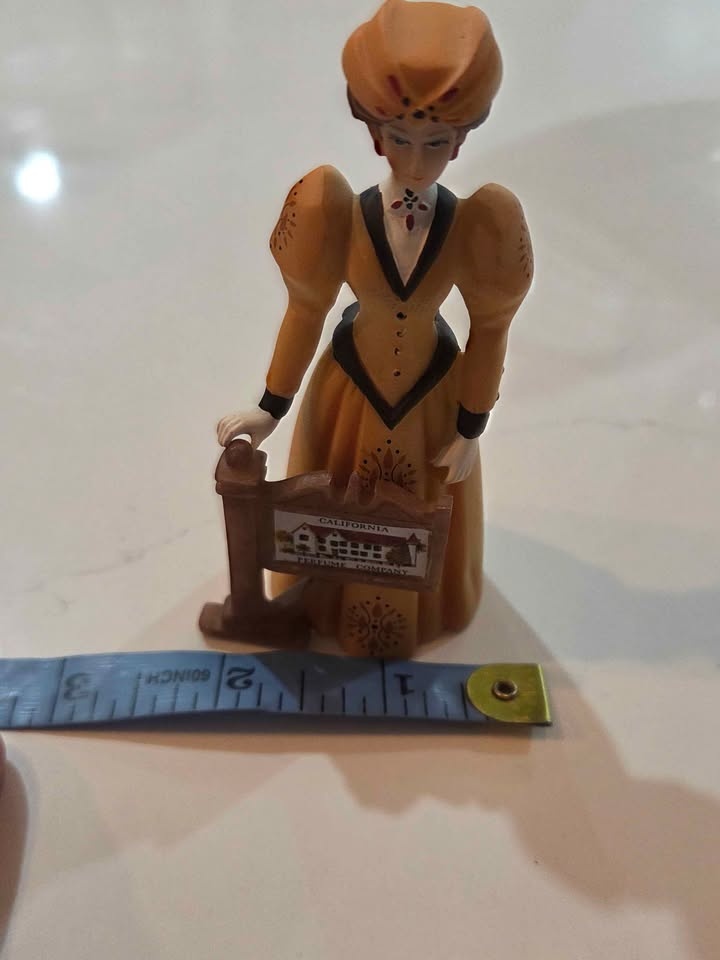 2013 Avon figurine featuring the classic Avon lady holding a California Perfume Company sign. Beautiful detail and a great piece of Avon history. In very good condition with no damage. Ideal for Avon collectors or display. Pickup at Oshawa near Ritson and Hillcroft
