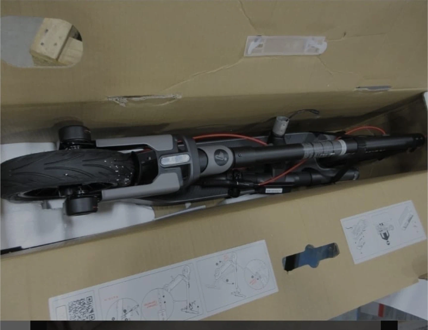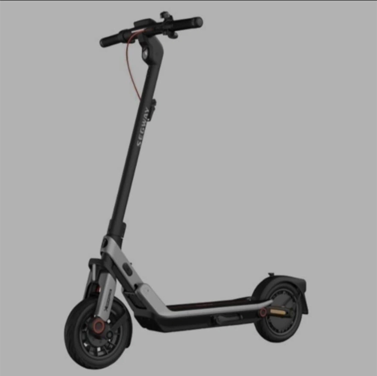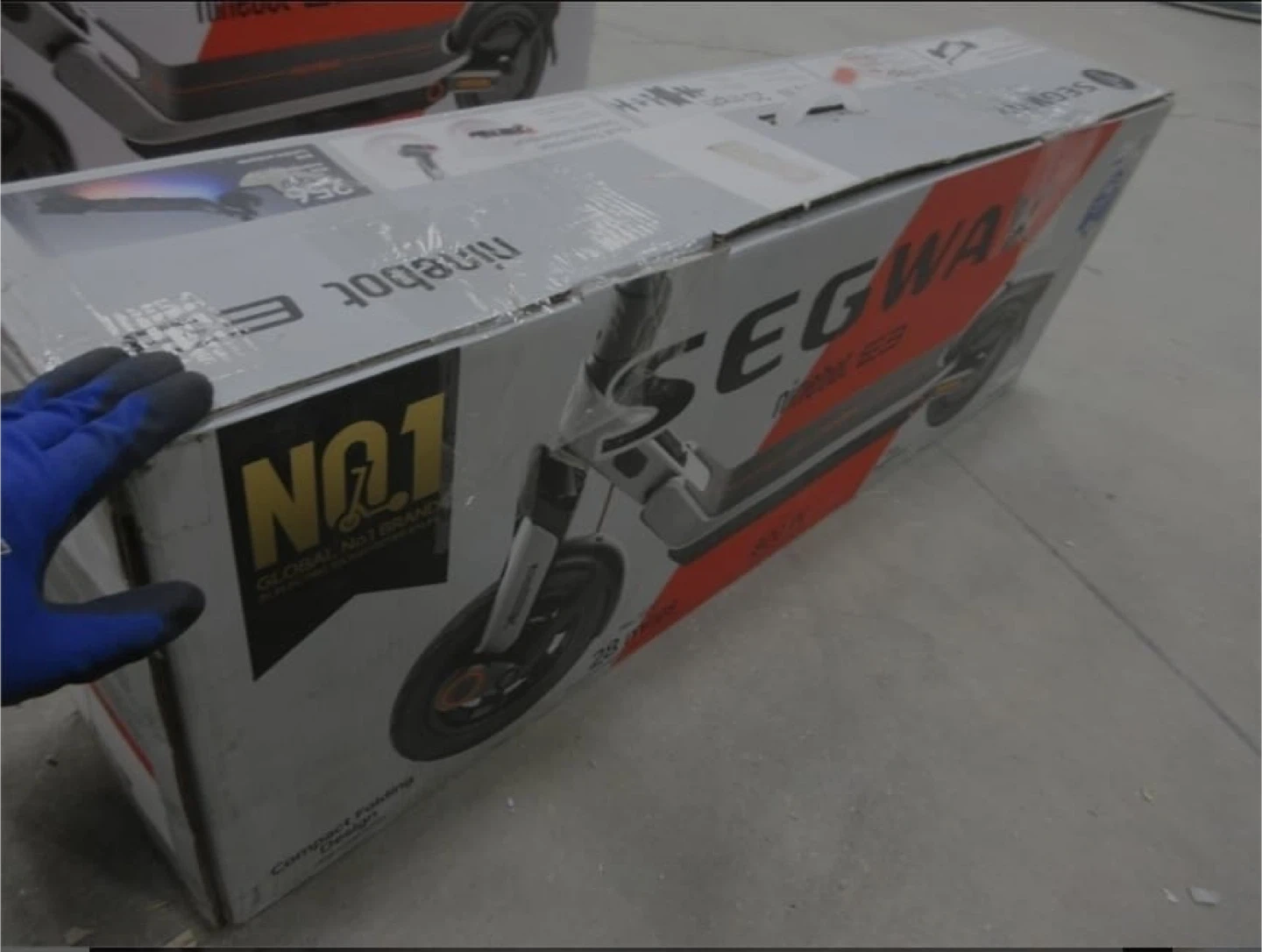 This is a Segway Ninebot E25 electric kickscooter. It's in grey and black. The scooter comes with its original box. It's a great way to get around town!