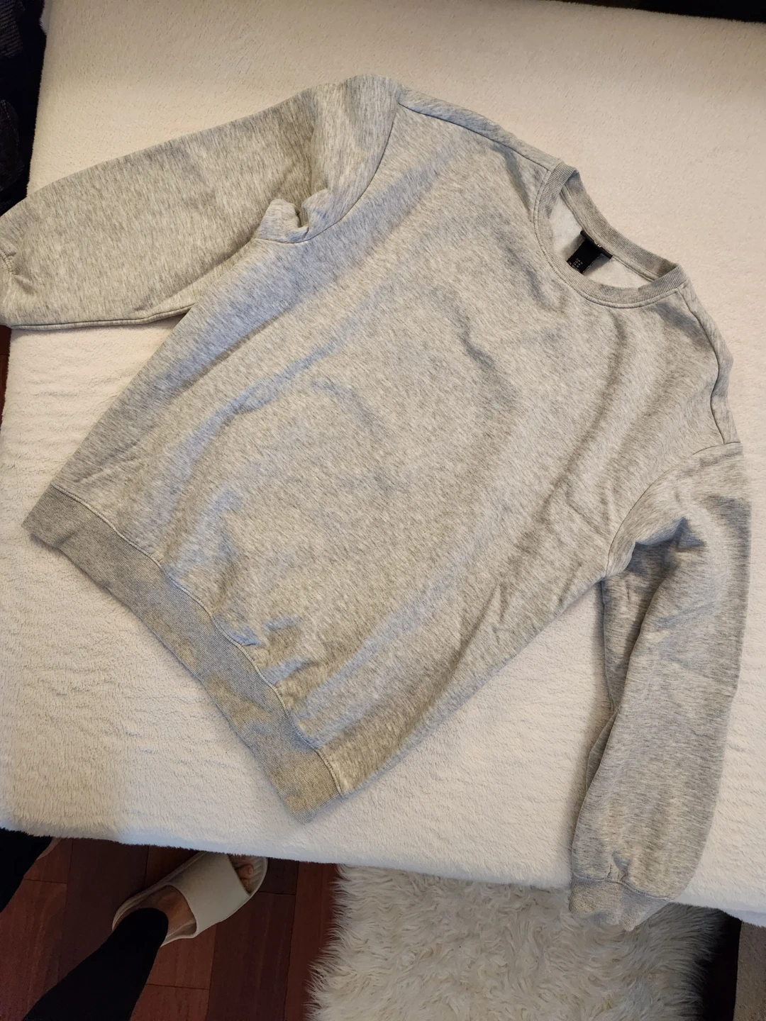 Grey H&M crew neck loose-fit sweatshirt in size Medium. It's made of a soft cotton blend for comfort. This pullover is a classic layering piece.
