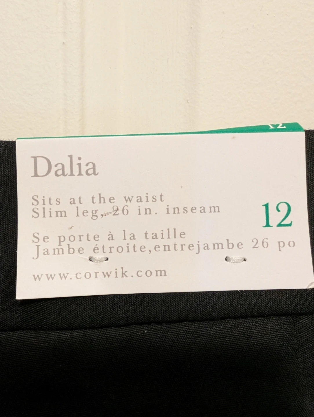 Dalia Black Slim Leg Pants Women's Size 12 - 26" Inseam