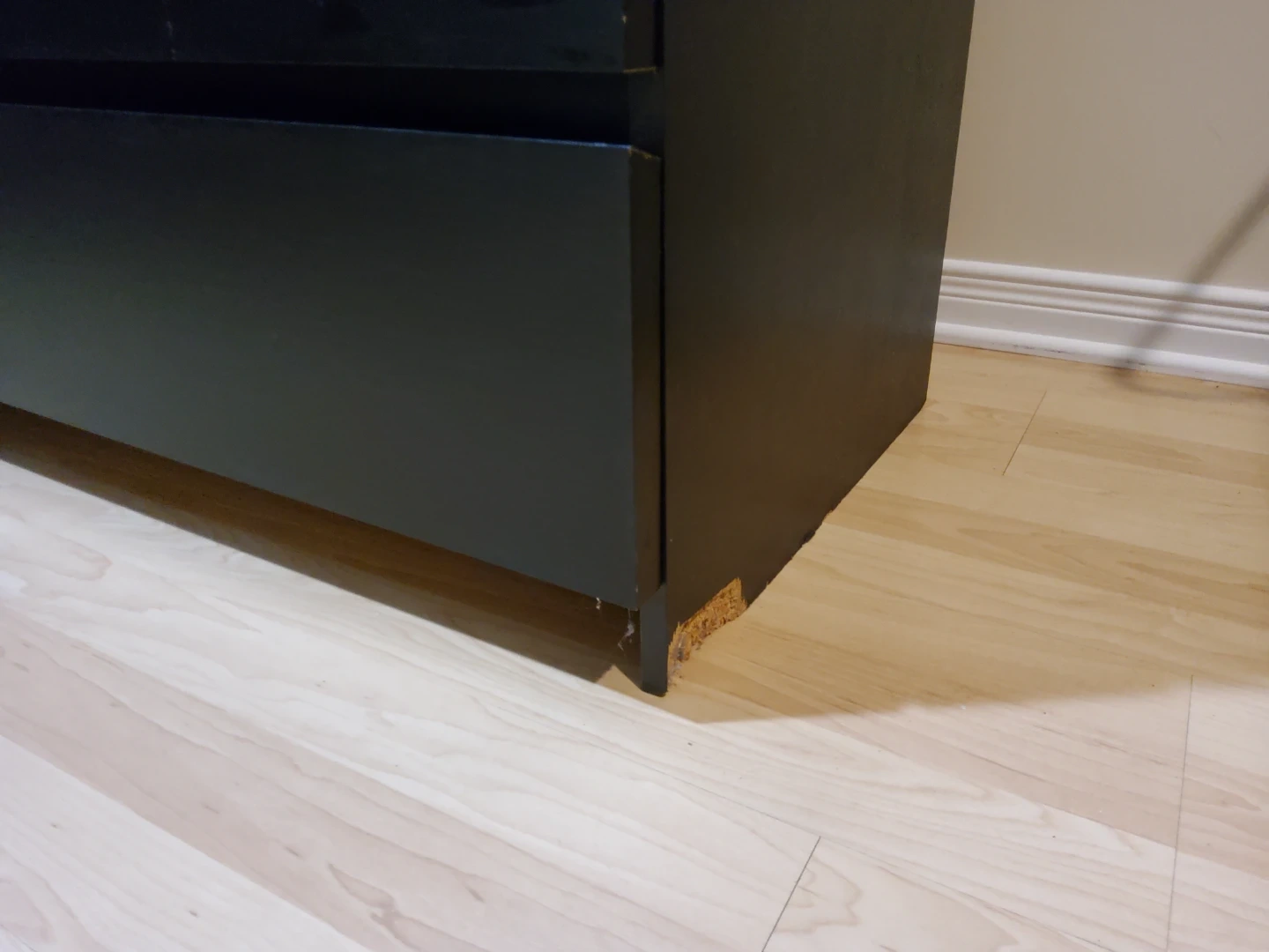 Selling a dark brown 6-drawer dresser. It's in good condition, perfect for adding storage to any room. The top surface is still great, and drawers work perfectly, but there's some wear on the left leg, as shown in the pictures.