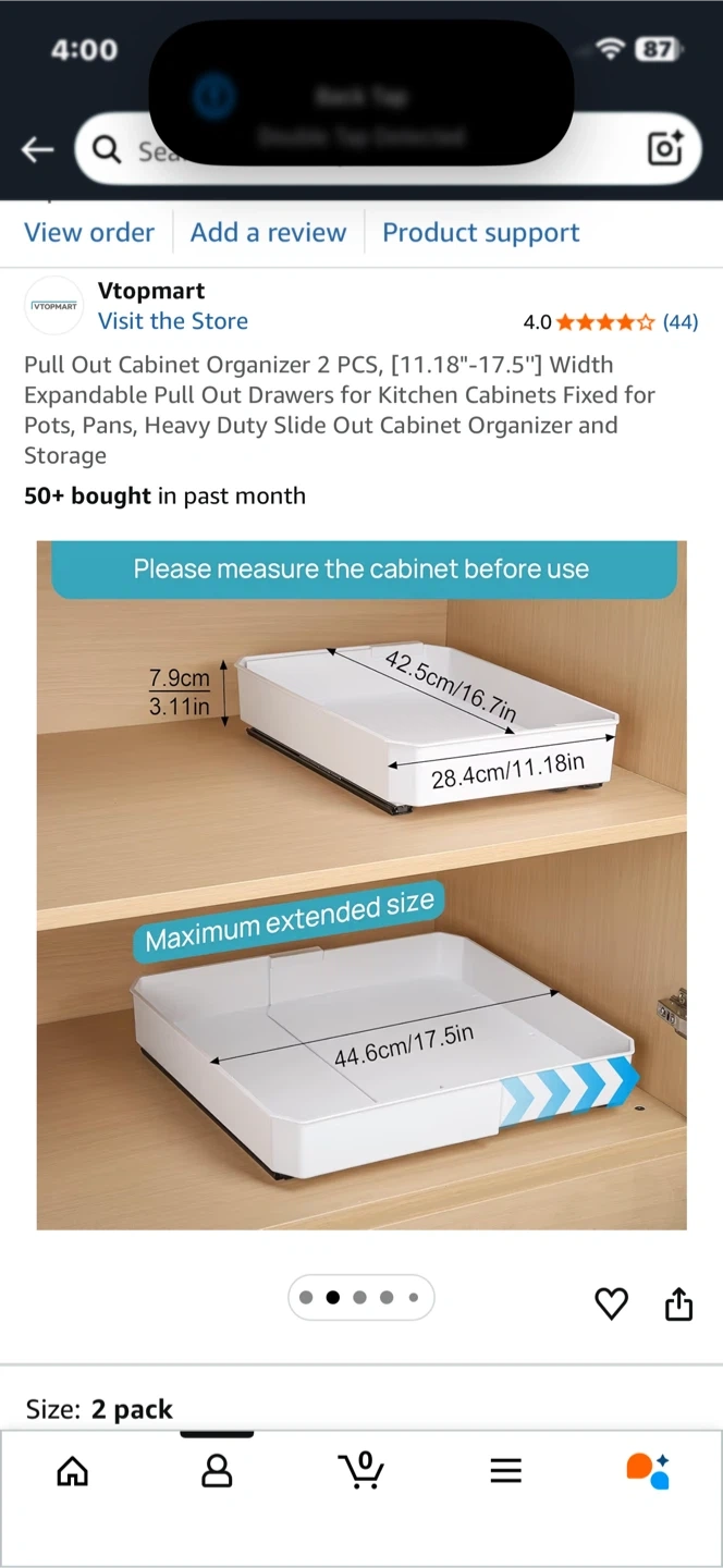 This is a 2-pack of pull-out cabinet organizers. It's designed for kitchen cabinets to hold pots, pans, and other storage items. The width is expandable from 11.18" to 17.5".