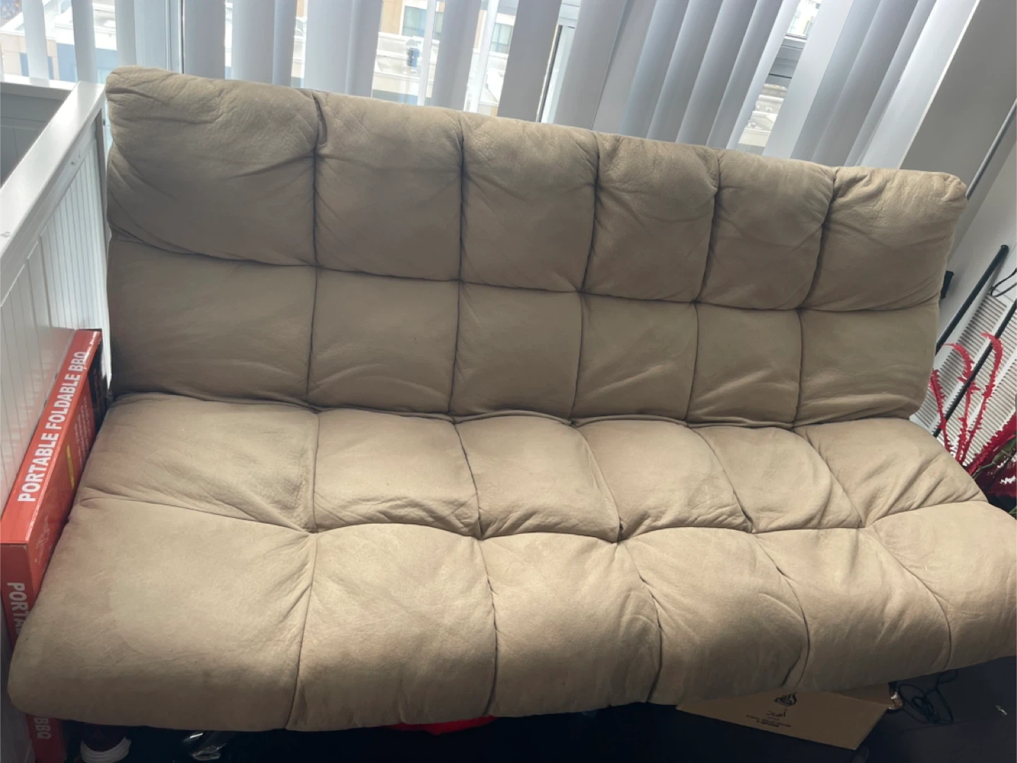 Selling a futon sofa bed. It's in great condition and ready for a new home! It's a tan colour and would be great for a living room or spare bedroom