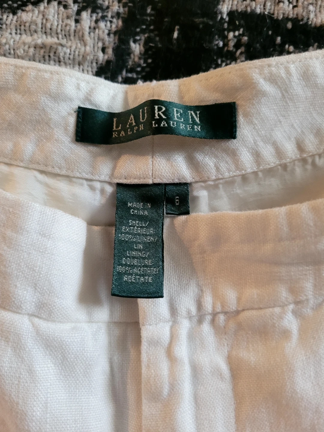 These are a pair of Lauren Ralph Lauren linen pants in size 6. The shell is made of 100% linen, and the lining is also linen. They're a nice light colour, perfect for summer!