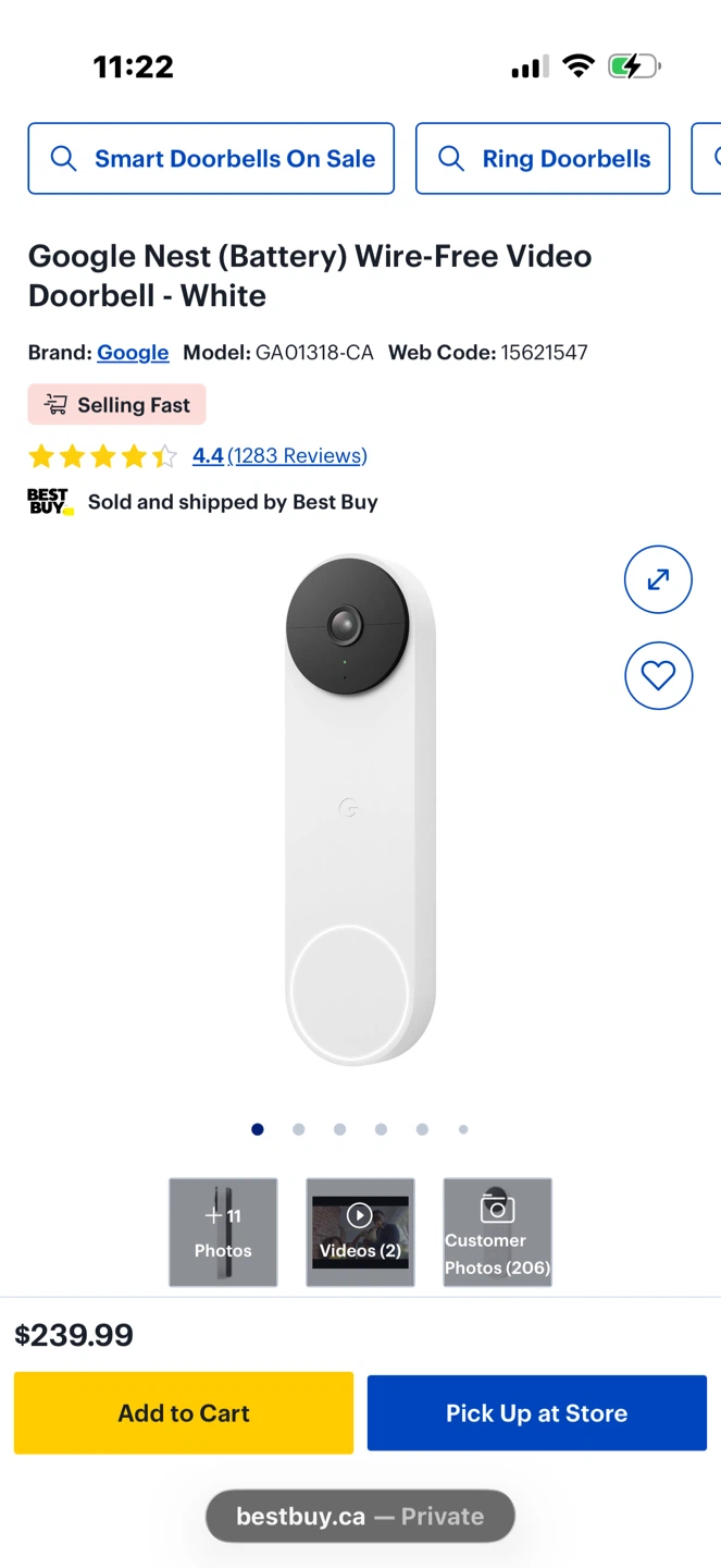 Selling a Google Nest Doorbell with battery power. It includes intelligent alerts for people, packages, animals, and vehicles. Features 24/7 live view in HDR and HD Talk and Listen. See who's there, no wires required! It’s brand new, still sealed in the box and it has never been opened used or taken out of the box.