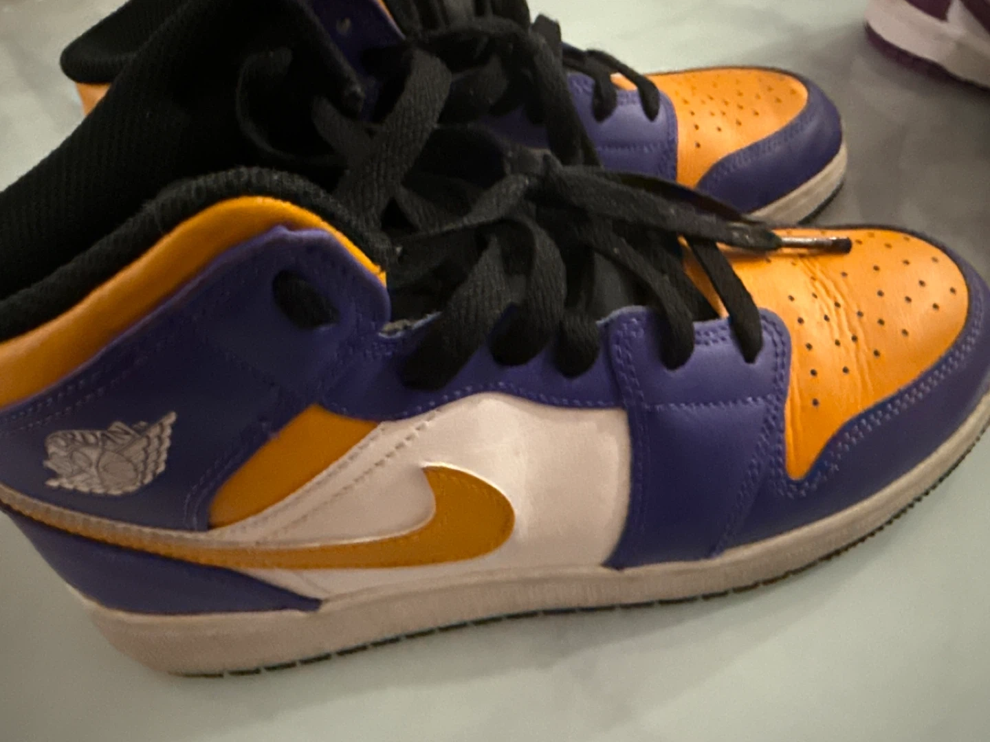 Selling a pair of Jordan 1 Lows in the Lakers colorway. These are youth size 6Y. They have been gently used but are still in good condition. Great for any young Lakers fan!