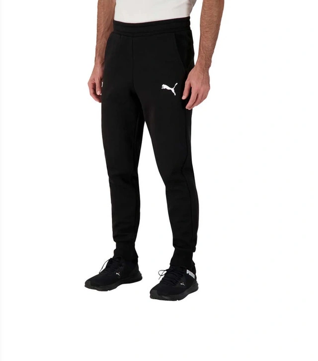 Features a drawstring at the waist, rib cuffs and hem, and the classic Puma cat logo on the upper thigh. Includes dual side pockets. Made from a comfortable 66% cotton and 34% polyester blend.