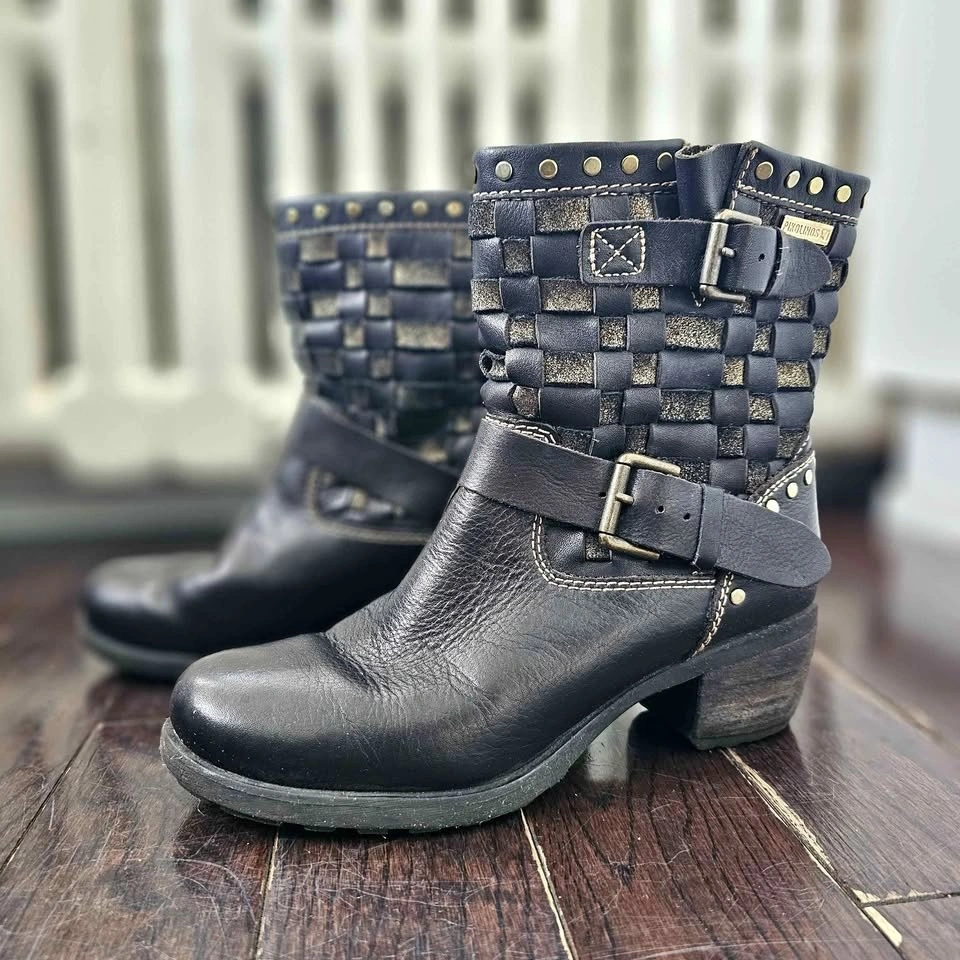 Pikolinos Woven Black Gold Leather Moto Ankle Boots EU 37