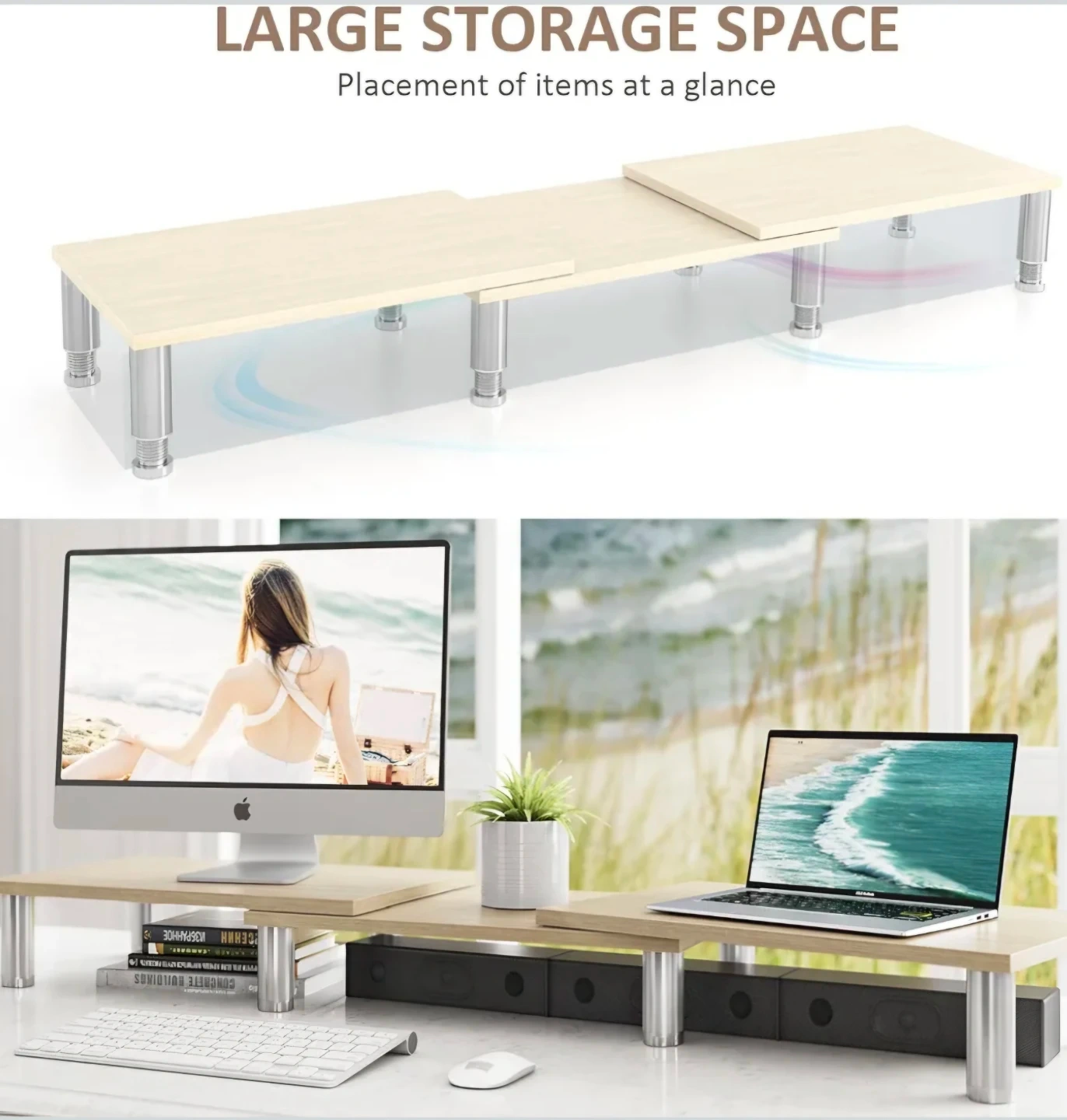Dual Monitor Stand Riser with Adjustable Height Steel leg. Great condition! For 2 Monitors with Storage Space. It's great for organizing your desk and raising your monitors!