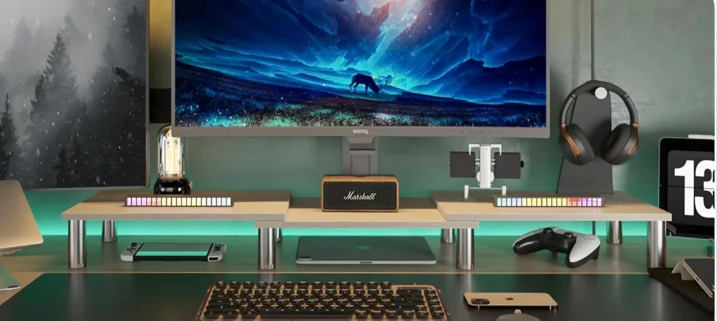 Dual Monitor Stand Risers with Adjustable Height Legs