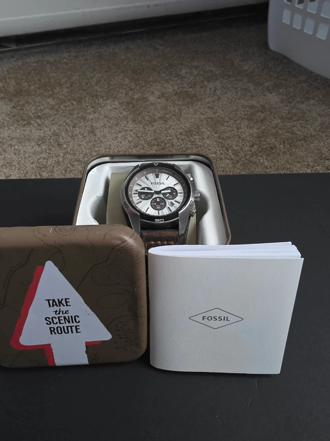 Buy & SellFossil WatchFossil Watch$75Fossil watch in its original tin box. Includes instruction manual. Chronograph watch with multiple subdials. Leather band.ConditionLike newBrandFossilWHERE TO MEETCheck LocationView MapSELLERverifiedChrisScotchtown650 reviews0 chats·0 favorites·8 viewsSEND CHAT TO SELLERHi Chris! I’m interested in your listing.Hi Chris! I’m interested in your listing.Get the Karrot app to chatSign In to chat