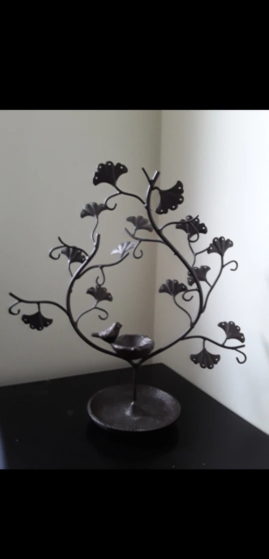 Decorative Jewelry Hanger Ginkgo Biloba Tree with bird in nest.
