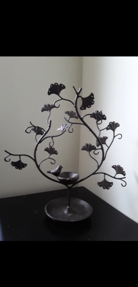 Can set rings and other things in nest or on tray at base of tree. Can hang jewelry including earrings, bracelets, necklaces and rings from branches.