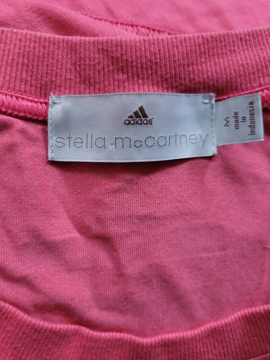 This is a women's pink tank top by Adidas and Stella McCartney. It's a size medium and made in Indonesia. The top features the Adidas logo on the front.