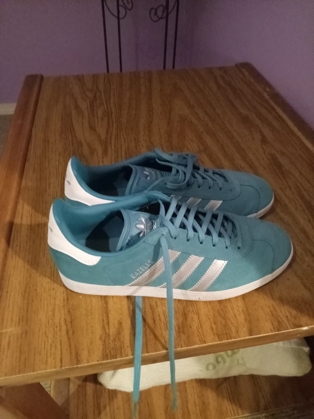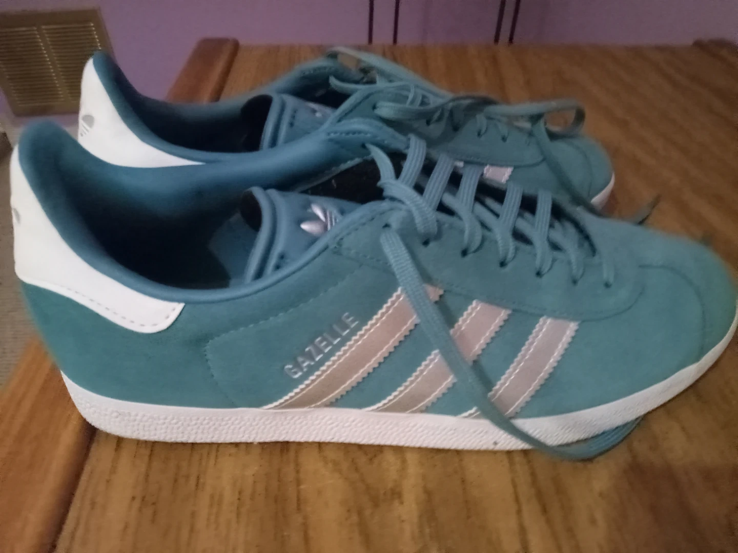 Buy & SellAdidas Gazelle Teal Suede SneakersAdidas Gazelle Teal Suede Sneakers$44These are Adidas Gazelle sneakers in a teal colour. They feature a suede upper with silver stripes. These shoes are great for casual wear.ConditionLike newSize9.5BrandAdidasWHERE TO MEET315 Birchmount RdView MapSELLERverifiedKatarzynaCliffside1013 reviews0 chats·0 favorites·15 viewsSEND CHAT TO SELLERHi Katarzyna! I’m interested in your listing.Hi Katarzyna! I’m interested in your listing.Get the Karrot app to chatSign In to chat