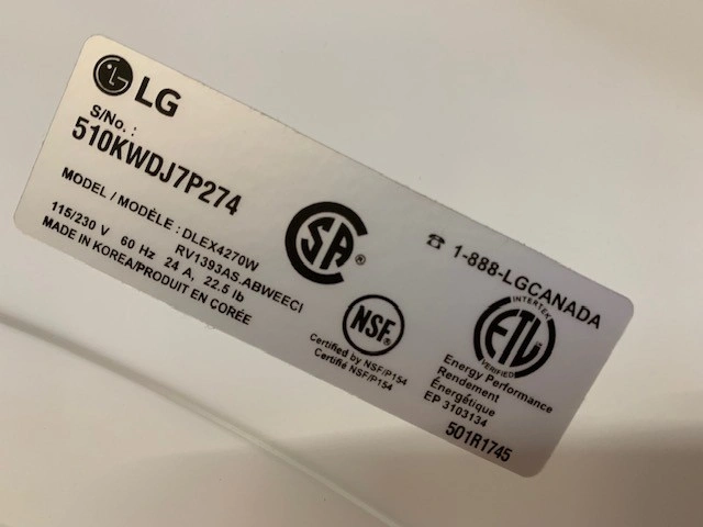LG Electric Dryer Model DLEX4270W