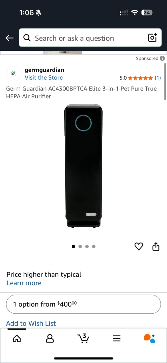 I'm selling a Germ Guardian AC4300BPTCA Elite 3-in-1 Pet Pure True HEPA Air Purifier! It has UV Light functions. It's in great condition but the filler is worn out. If u purchase this you’ll need to purchase the new filter.