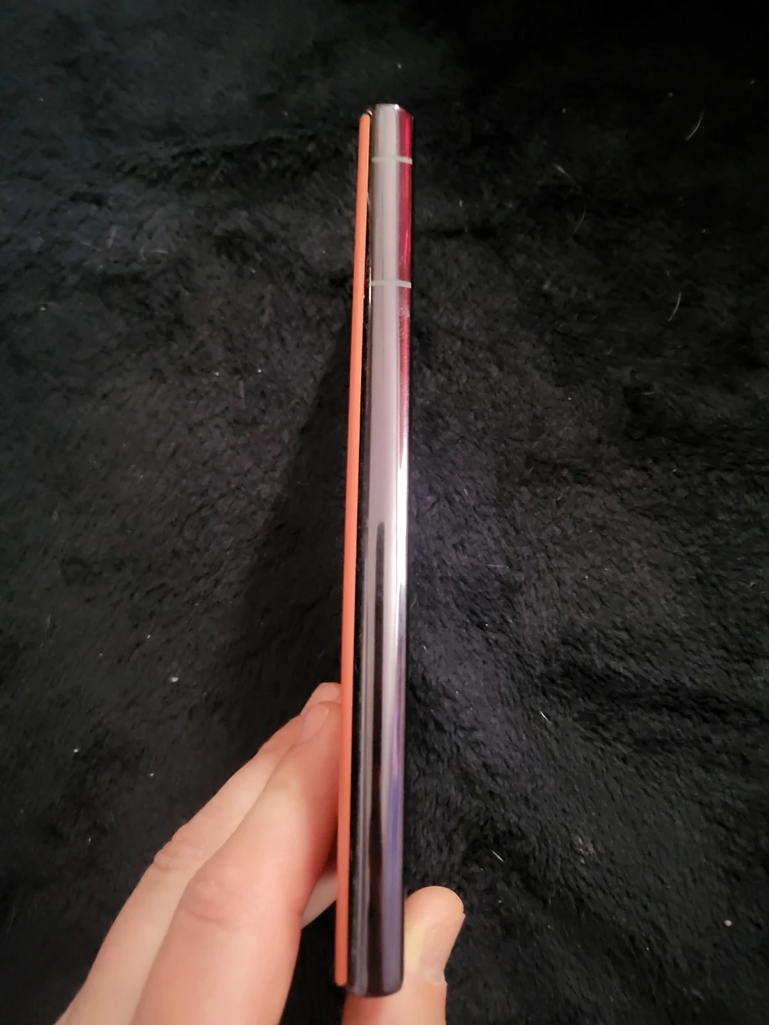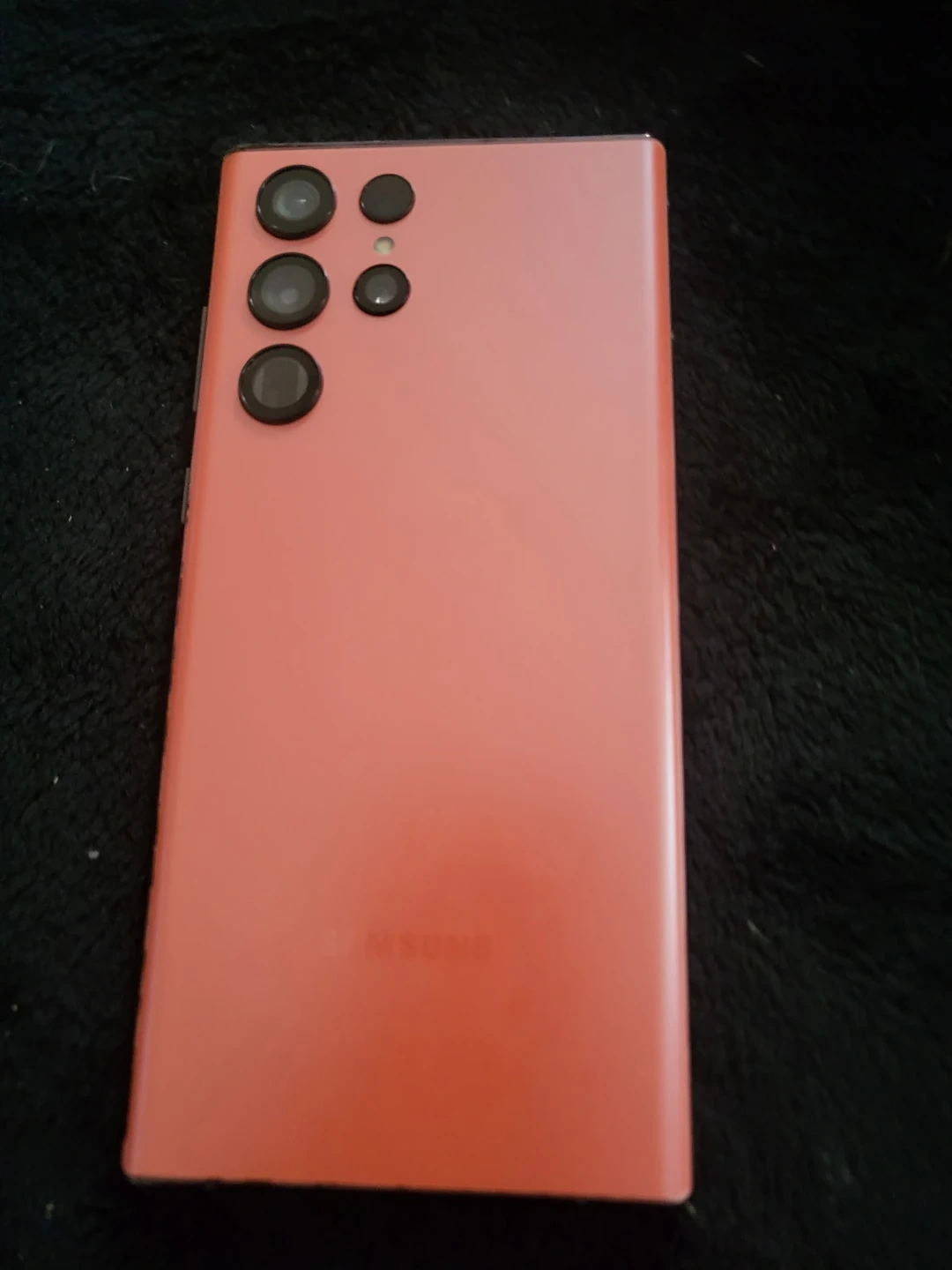 This is a Samsung Galaxy S22 Ultra cell phone in coral. The back cover is coming off a bit, the fingerprint scanner doesn't work,