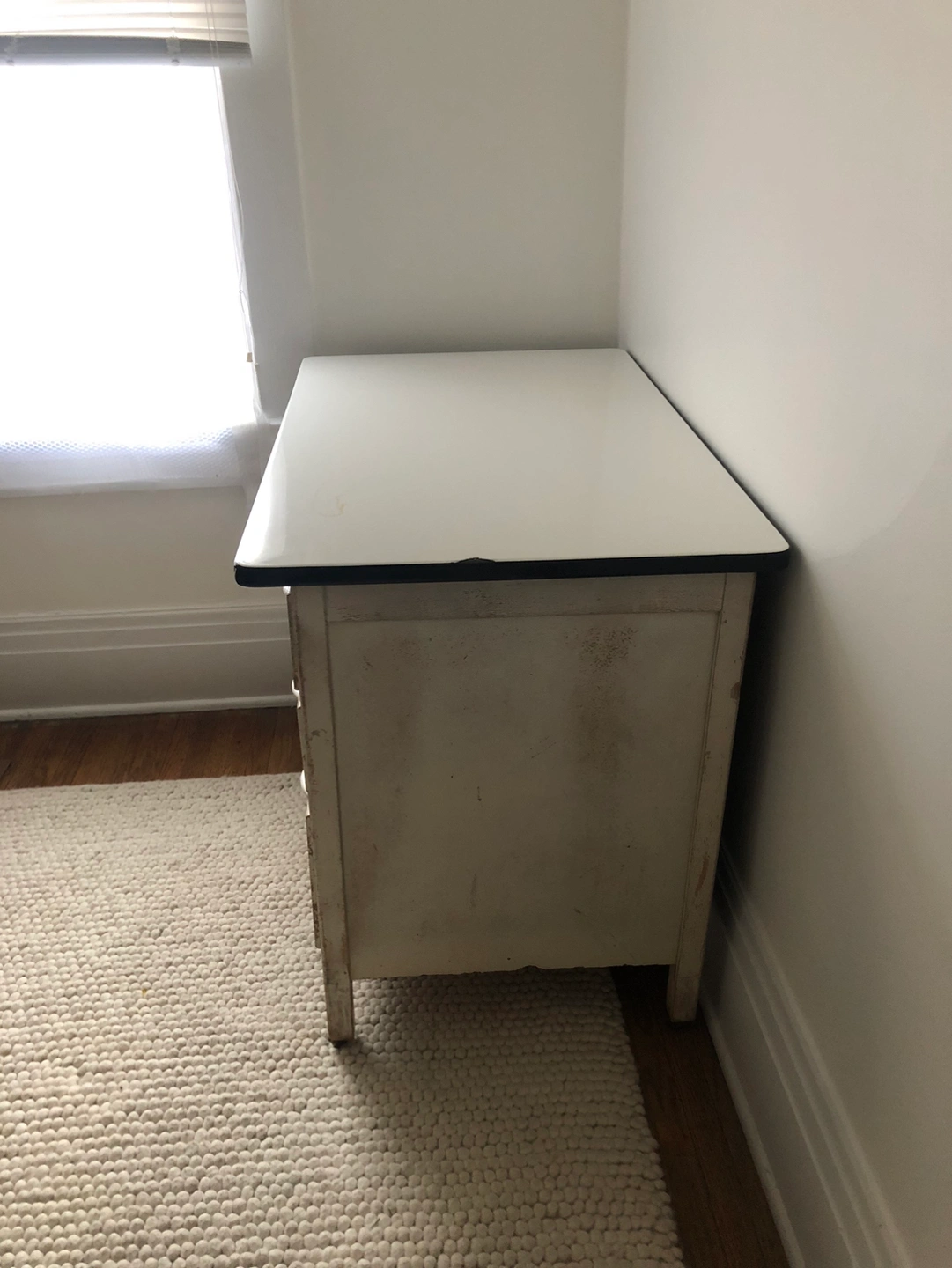 This piece has charm and always got a lot of attention whenever we had guests. Naturally distressed with old paint. Sadly, it no longer fits in our new space.
