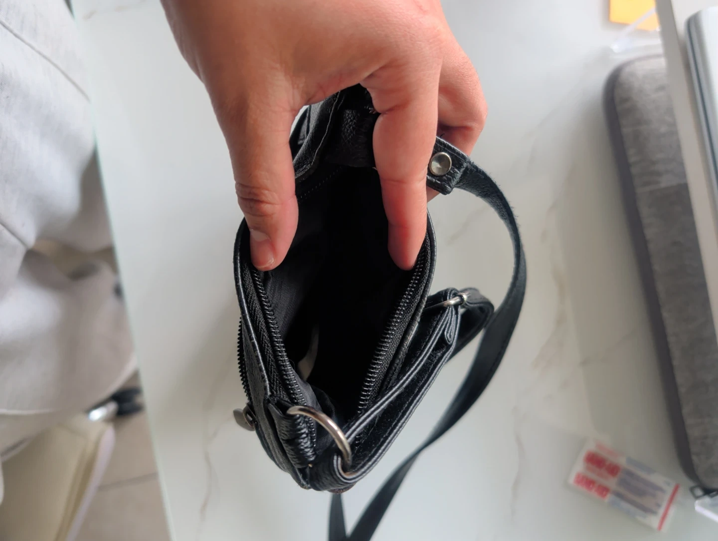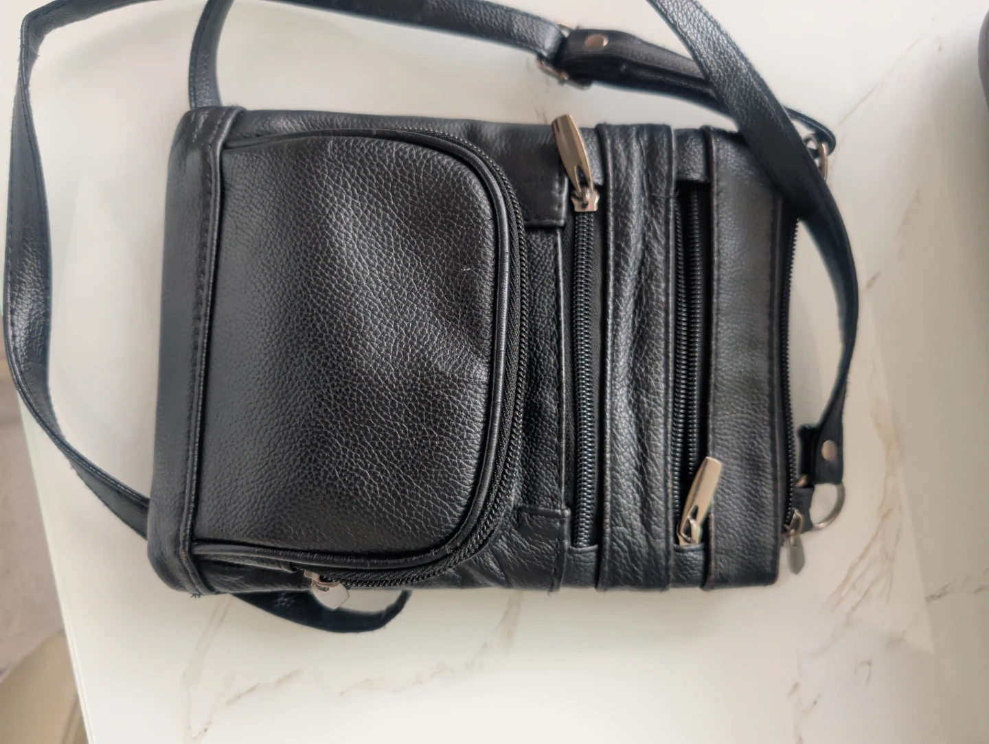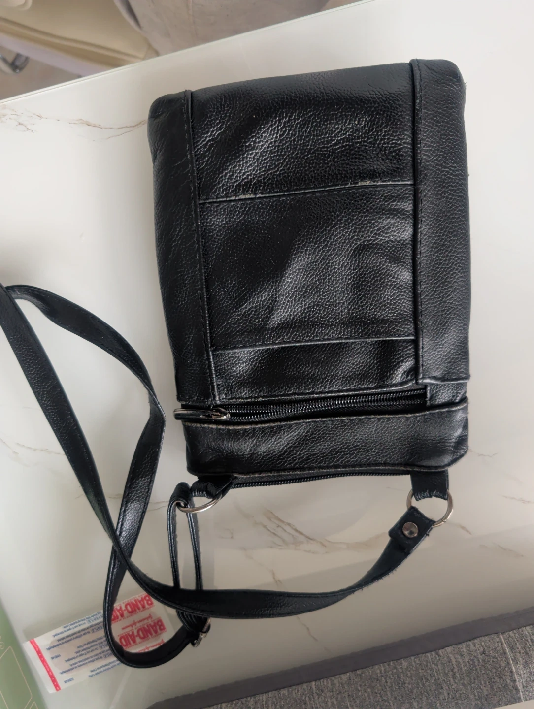 Buy & SellBlack Leather Crossbody BagBlack Leather Crossbody Bag$7This is a black leather crossbody bag. It has multiple zippered compartments for storage. Material is leather SyntheticConditionOkaySizesmallWHERE TO MEETStarbucksView MapSELLERverifiedmariaMariners Harbor600 reviews0 chats·0 favorites·4 viewsSEND CHAT TO SELLERHi maria! I’m interested in your listing.Hi maria! I’m interested in your listing.Get the Karrot app to chatSign In to chat