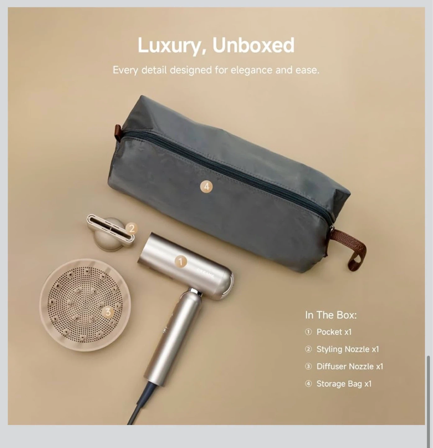 DREAME Pocket Hair Dryer , Lightweight, Magnetic Attachments