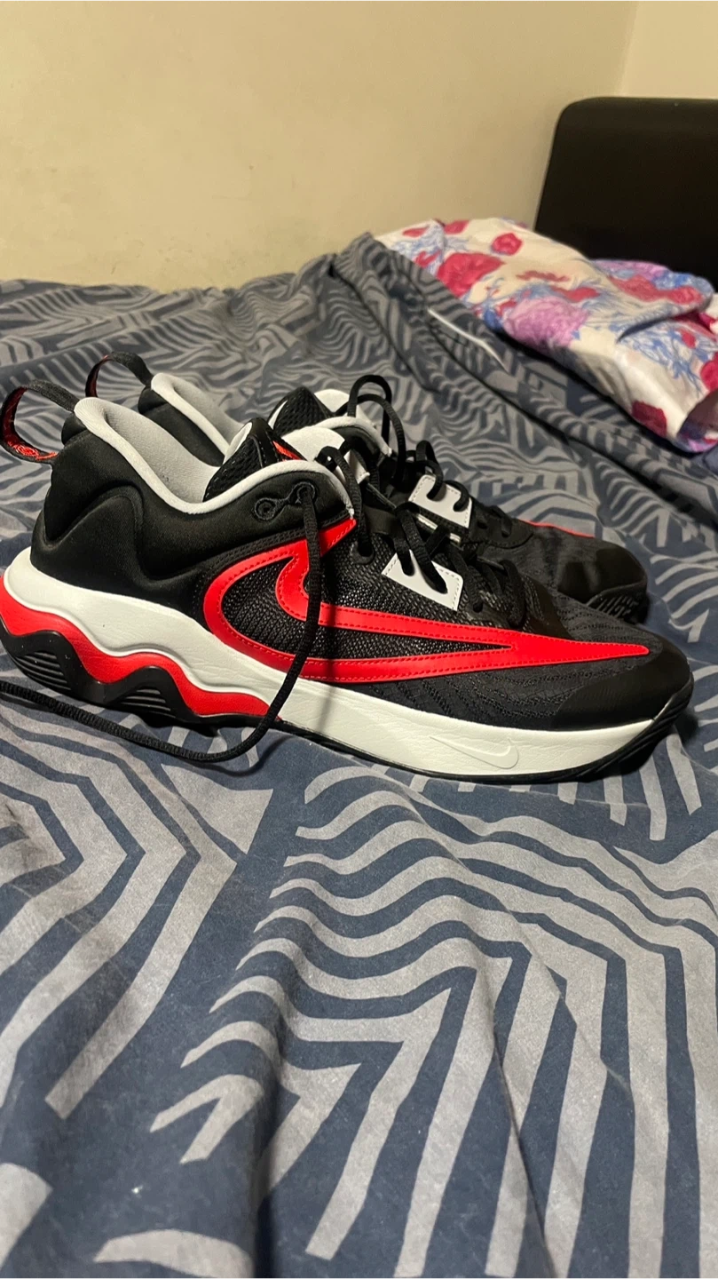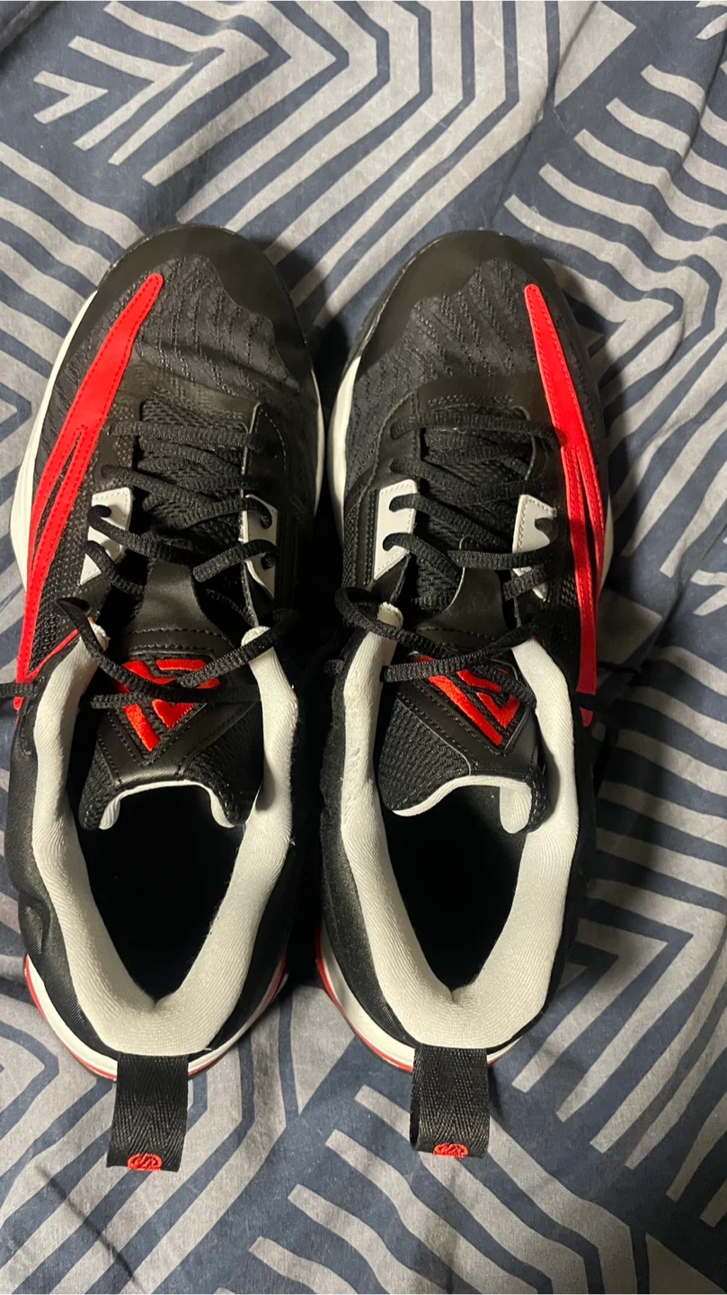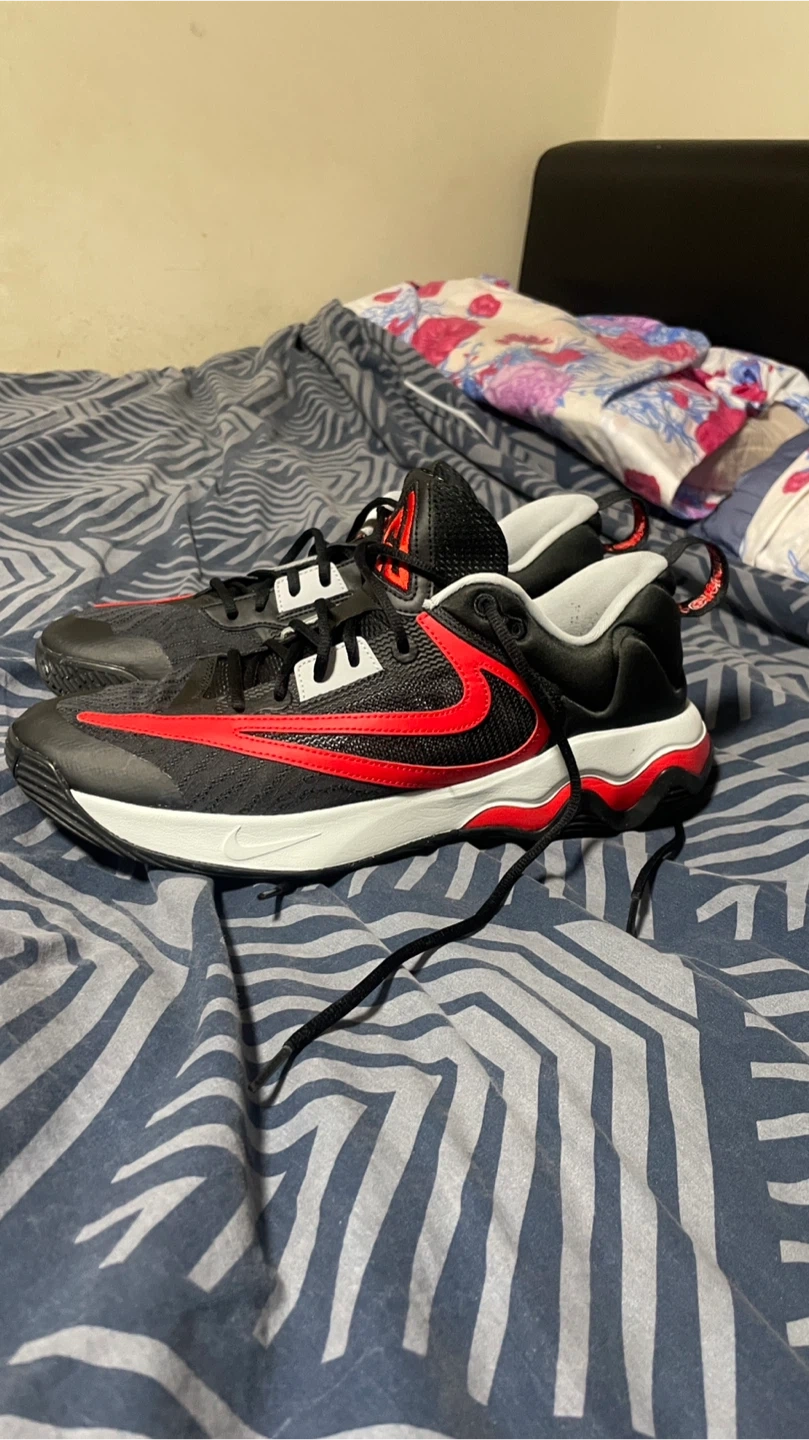 These Giannis Immortality 3 Shoes are black with red accents. They feature a lace-up closure and a durable sole. The size is 10.