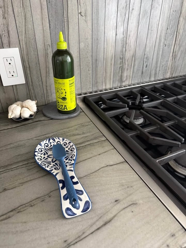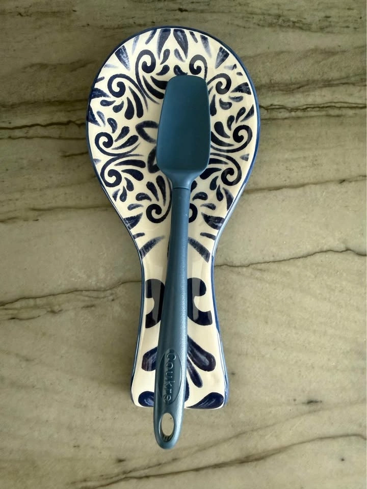 Add a touch of charm to your kitchen with this beautiful blue and white ceramic spoon rest. The classic floral pattern and glossy finish make it both functional and decorative on your countertop. Made from durable glazed ceramic with an elegant blue floral design on white. Perfect for holding cooking spoons while preparing meals and easy to clean. Pickup in Battery Park City.