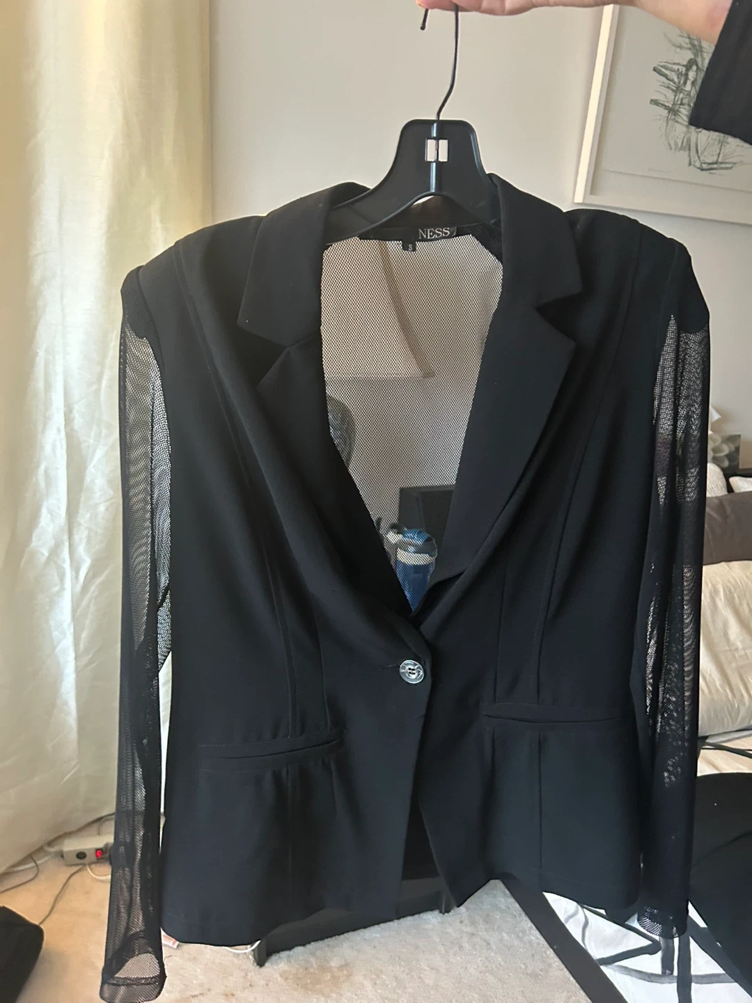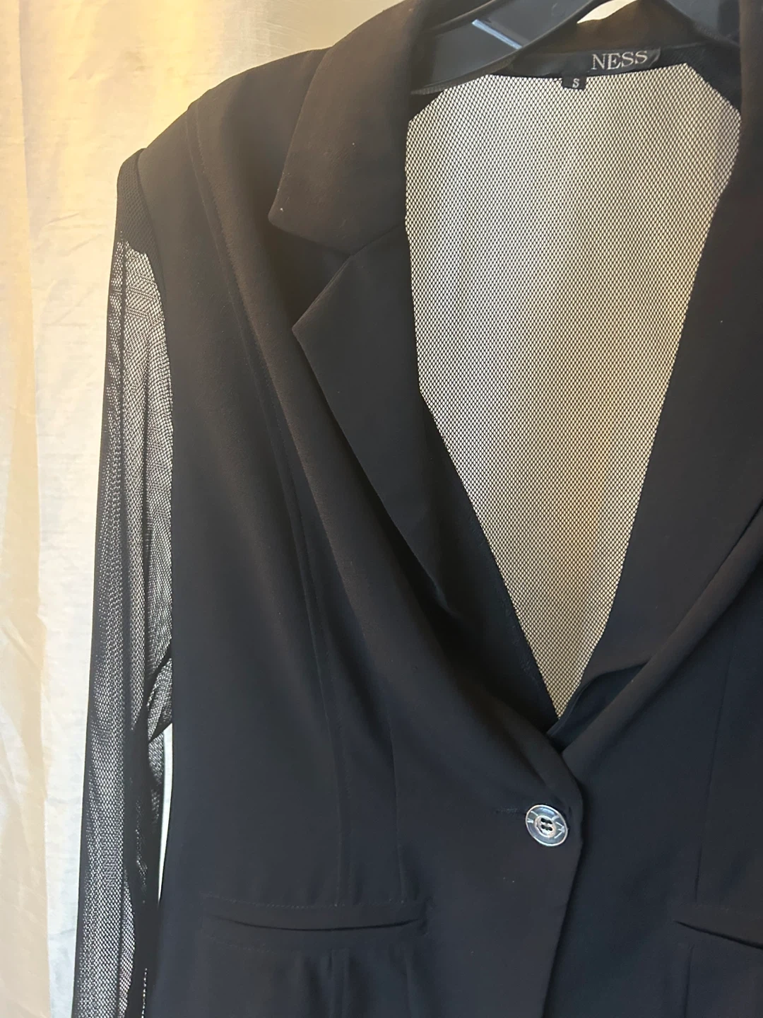 Buy & SellNESS Black Mesh Sleeve BlazerNESS Black Mesh Sleeve Blazer$38A stylish black blazer from NESS. It features sheer mesh sleeves and a mesh insert at the back. Button closure at the front. Size is small.ConditionLike newSizeMediumBrandNESSWHERE TO MEETOrleansView MapSELLERverifiedSameenaChapel Hill N550 reviews0 chats·0 favorites·1 viewsSEND CHAT TO SELLERHi Sameena! I’m interested in your listing.Hi Sameena! I’m interested in your listing.Get the Karrot app to chatSign In to chat